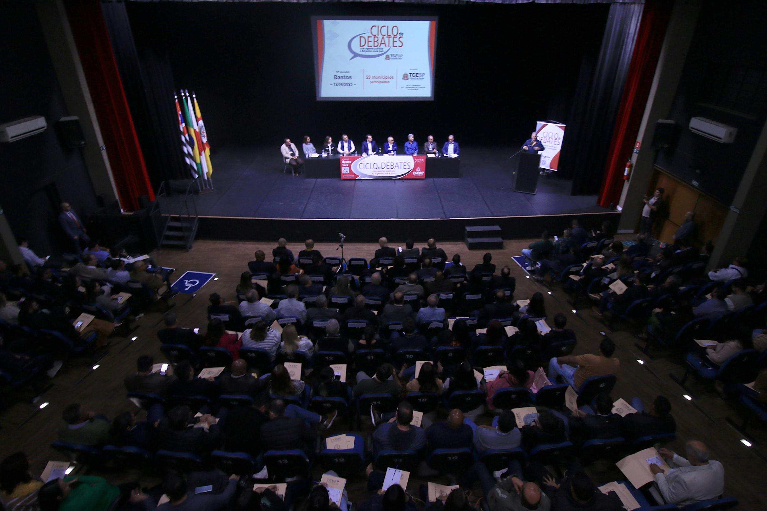 12/06/2025 – BASTOS (SP) – Lideranças políticas de 23 municípios jurisdicionados da região de Adamantina participaram na quinta-feira (12/6), às 14h00, em Bastos (SP), das atividades da 29ª edição do Ciclo de Debates promovido pelo Tribunal de Contas do Estado de São Paulo (TCESP) com Agentes Políticos e Dirigentes Municipais.