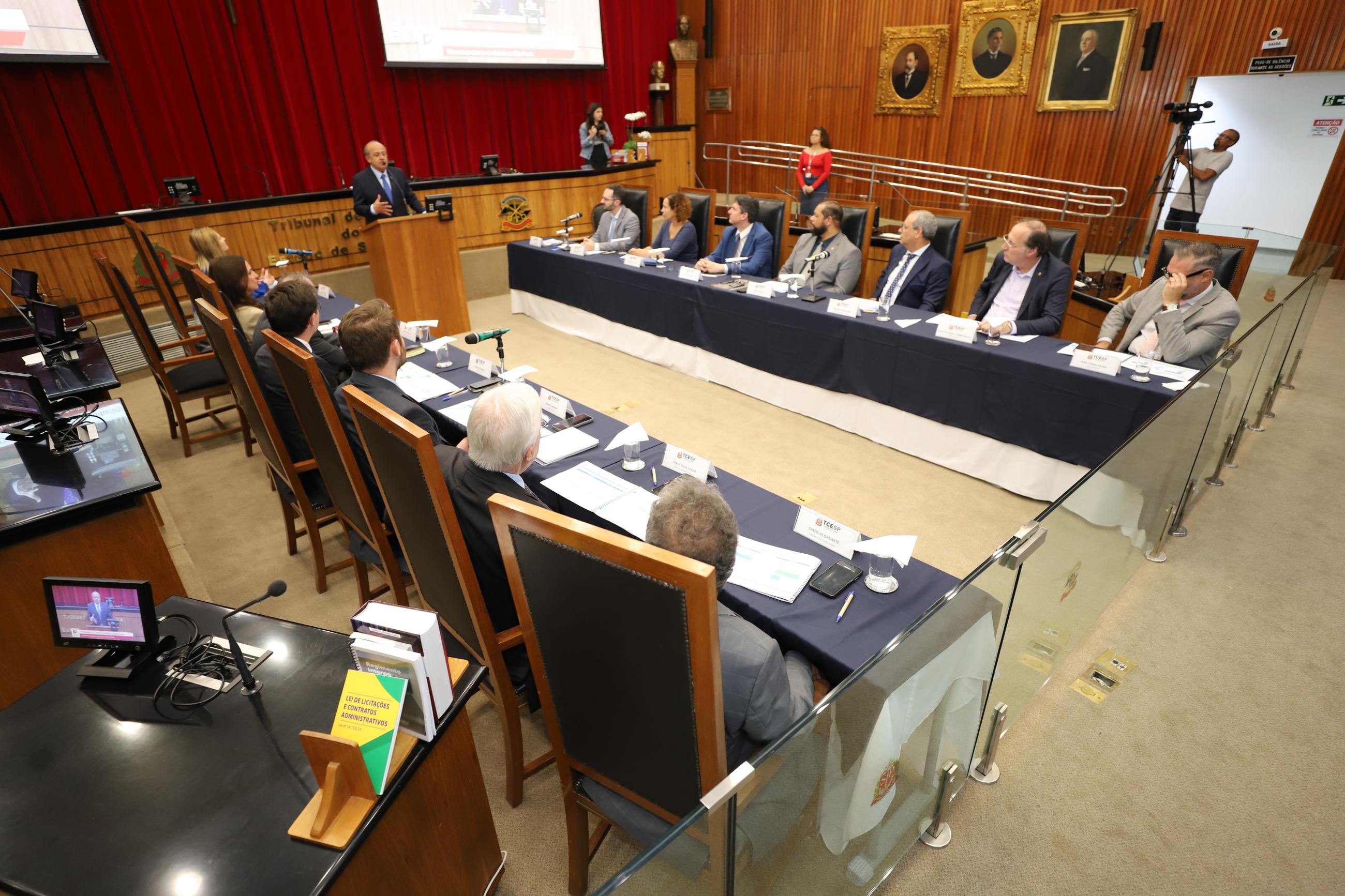 Ainda na mesa, representando as Chefias de Gabinetes dos Conselheiros, Rosy Maria de Oliveira (Cristiana de Castro Moraes); Gustavo Hermes Hennemann (Dimas Ramalho); Robert Werner Koller (Marco Bertaiolli); Olavo Silva Junior (Renato Martins Costa); Eugenio Pereira de Lima (Sidney Beraldo); Cristiano de Arruda Barbirato (Maxwell Borges de Moura Vieira); e Ronaldo Leite Ferreira (Wagner de Campos Rosário).