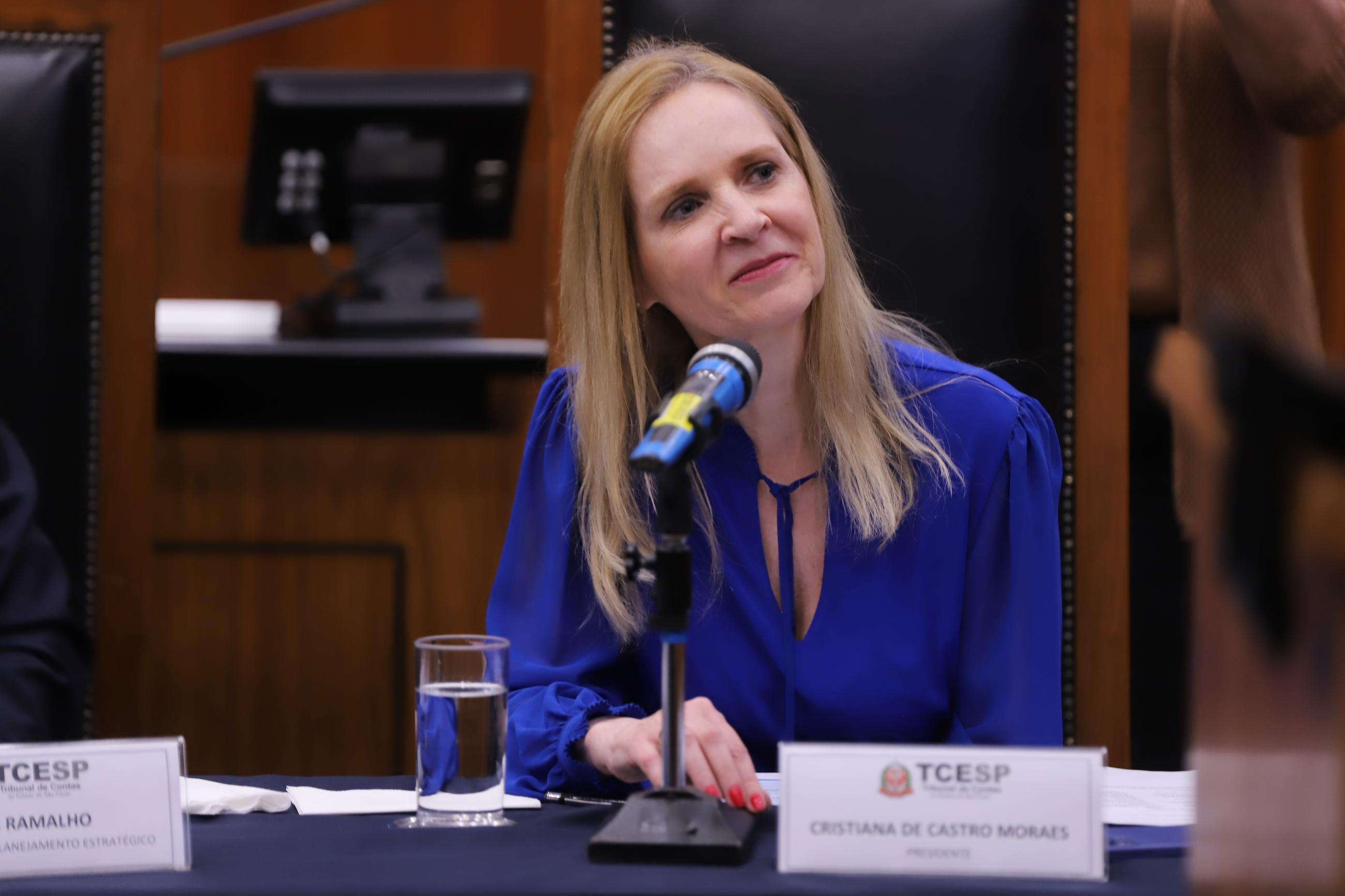 Compuseram a mesa da reunião, a Presidente do TCESP, Conselheira Cristiana de Castro Moraes; o Vice-Presidente da Corte e Coordenador do Planejamento Estratégico, Conselheiro Dimas Ramalho; o Diretor de Coordenação Estratégica (DCE), Leonardo Cristiano, responsável pela condução dos trabalhos; a Procuradora-Geral do Ministério Público de Contas (MPC), Leticia Formoso Delsin Matuck Feres; o Coordenador do Corpo de Conselheiros Substituto-Auditores, Alexandre Manir Figueiredo Sarquis; o Secretário-Diretor Geral, Germano Fraga Lima; o Diretor do Departamento Geral da Administração (DGA), Carlos Eduardo Corrêa Malek; e o Diretor do Departamento de Tecnologia da Informação (DTI), Fabio Corrêa Xavier.