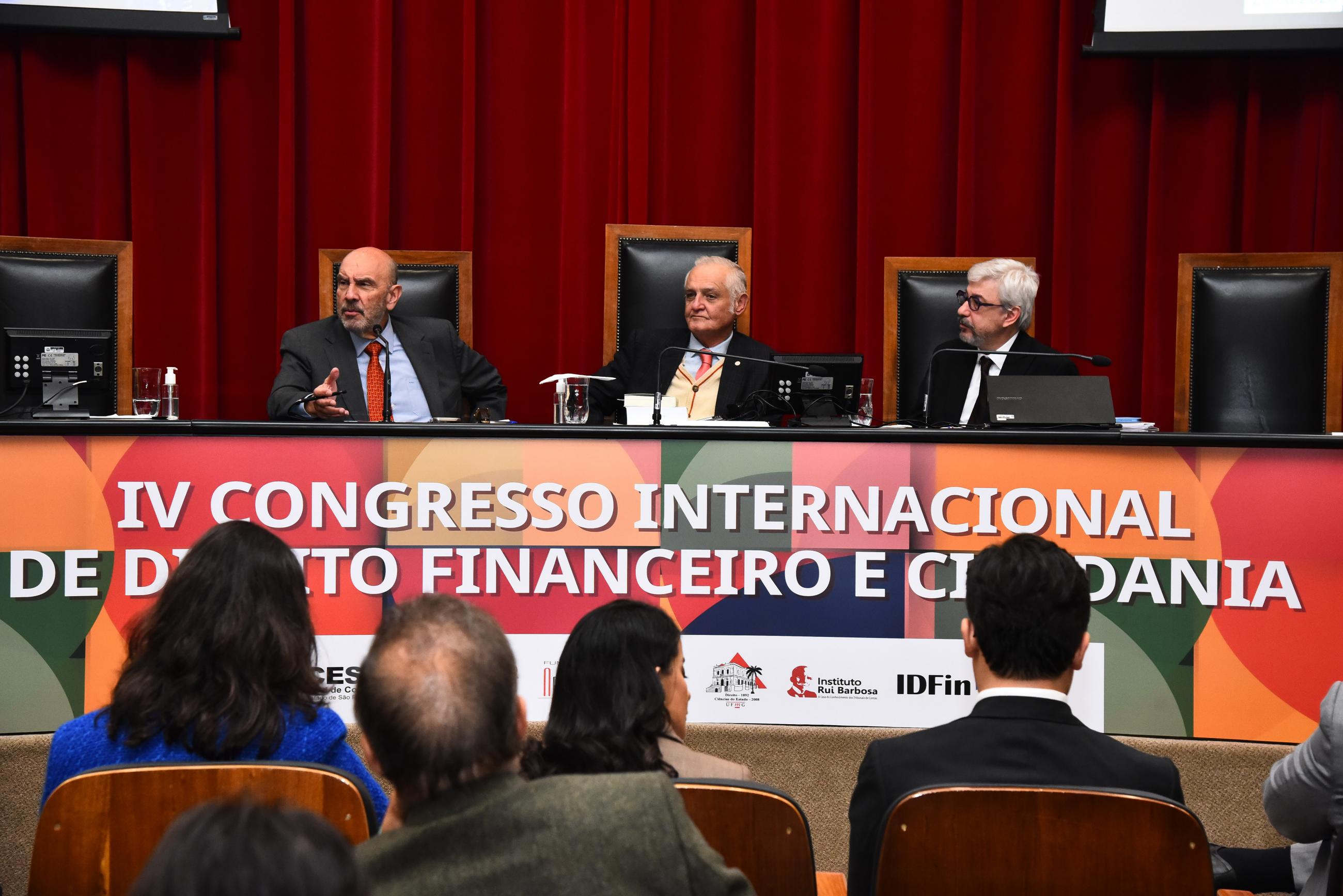 Em sua palestra, o Professor Titular da Faculdade de Direito da Universidade de Buenos Aires, Horácio Corti, fez, primeiramente, uma ligeira comparação do direito financeiro entre Brasil e Argentina. Na Carta de seu país, de 1893, o tema é tratado de forma dispersa e suscinta, enquanto na brasileira o direito financeiro é discutido de uma maneira concentrada em capítulo. “Na Argentina, essas regras são dispersas, mas também muito breves, lacônicas, ao passo que no Brasil há um capítulo específico, mais detalhado”, disse.
