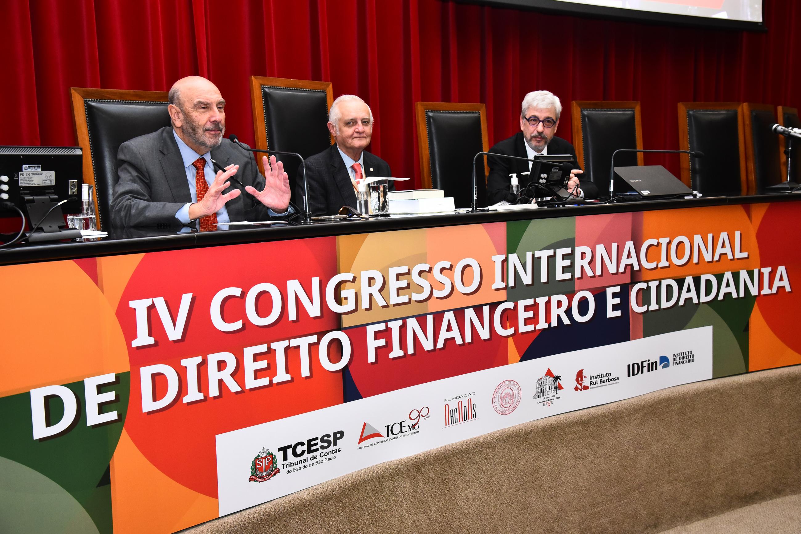 Realizado entre os dias 25 e 26 de agosto, o IV Congresso Internacional de Direito Financeiro e Cidadania é promovido pelo TCESP, em parceria com o TCE-MG, com a Fundação Arcadas, com a Universidade de São Paulo (USP), com a Universidade Federal de Minas Gerais (UFMG), com o Instituto Rui Barbosa (IRB) e com o Instituto de Direito Financeiro (IDFin).