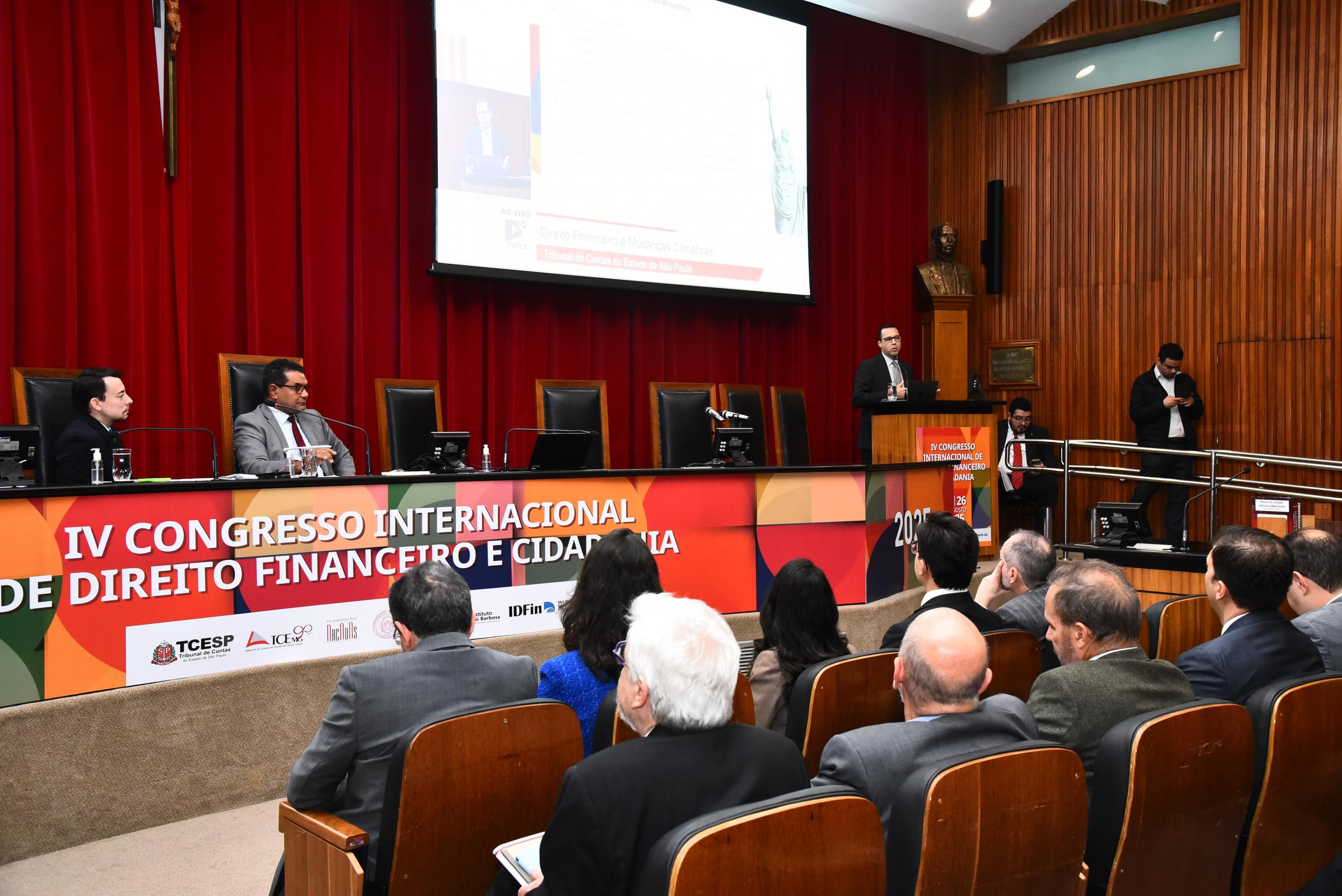 26/08/2025 – SÃO PAULO – Após a Conferência de Abertura, a programação do IV Congresso Internacional de Direito Financeiro e Cidadania prosseguiu, na manhã da terça-feira (26/8), com o Painel 4 que abordou o tema ‘Direito Financeiro e Mudanças Climáticas’.