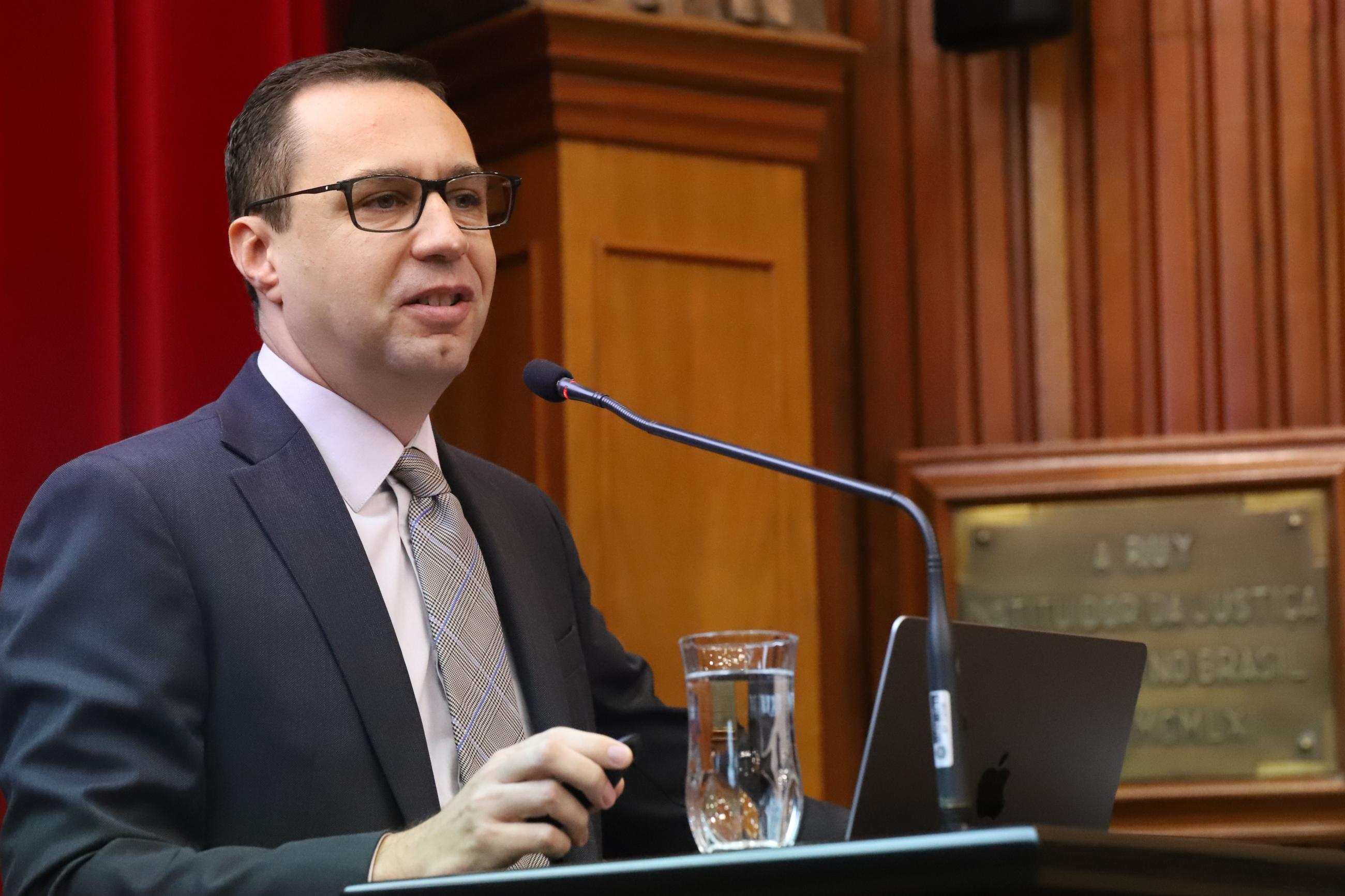 Na sequência, o Advogado e Professor da FGV, Flávio Rubinstein, proferiu palestra abordando, dentre outros assuntos, a importância de prevenir os desastres para, além de salvar vidas, reduzir o impacto financeiro.
