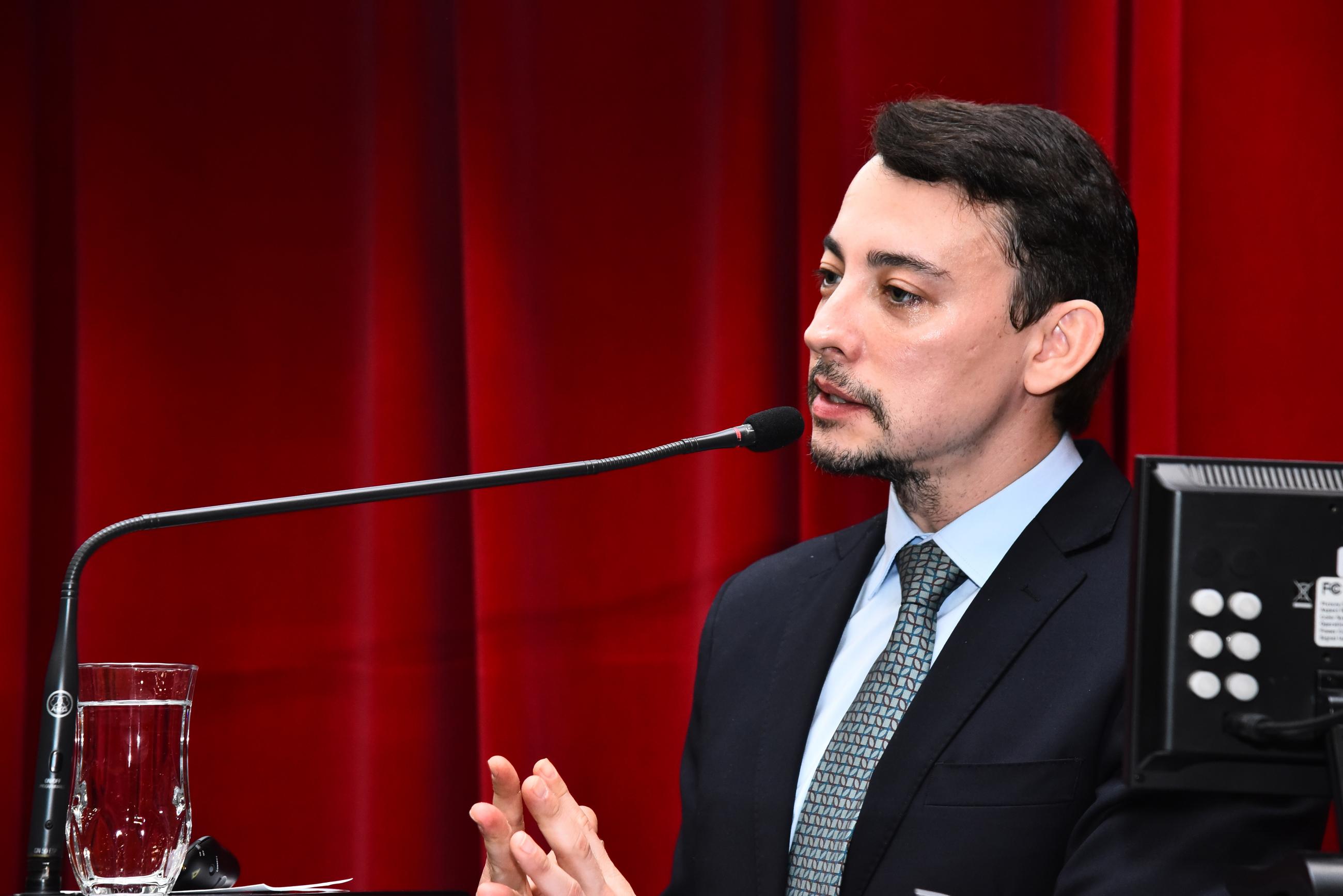 Em seu discurso de abertura, o presidente da mesa, Conselheiro Substituto Licurgo Mourão, destacou a organização do evento e começou a sessão de debates sobre um tema tão importante da atualidade.