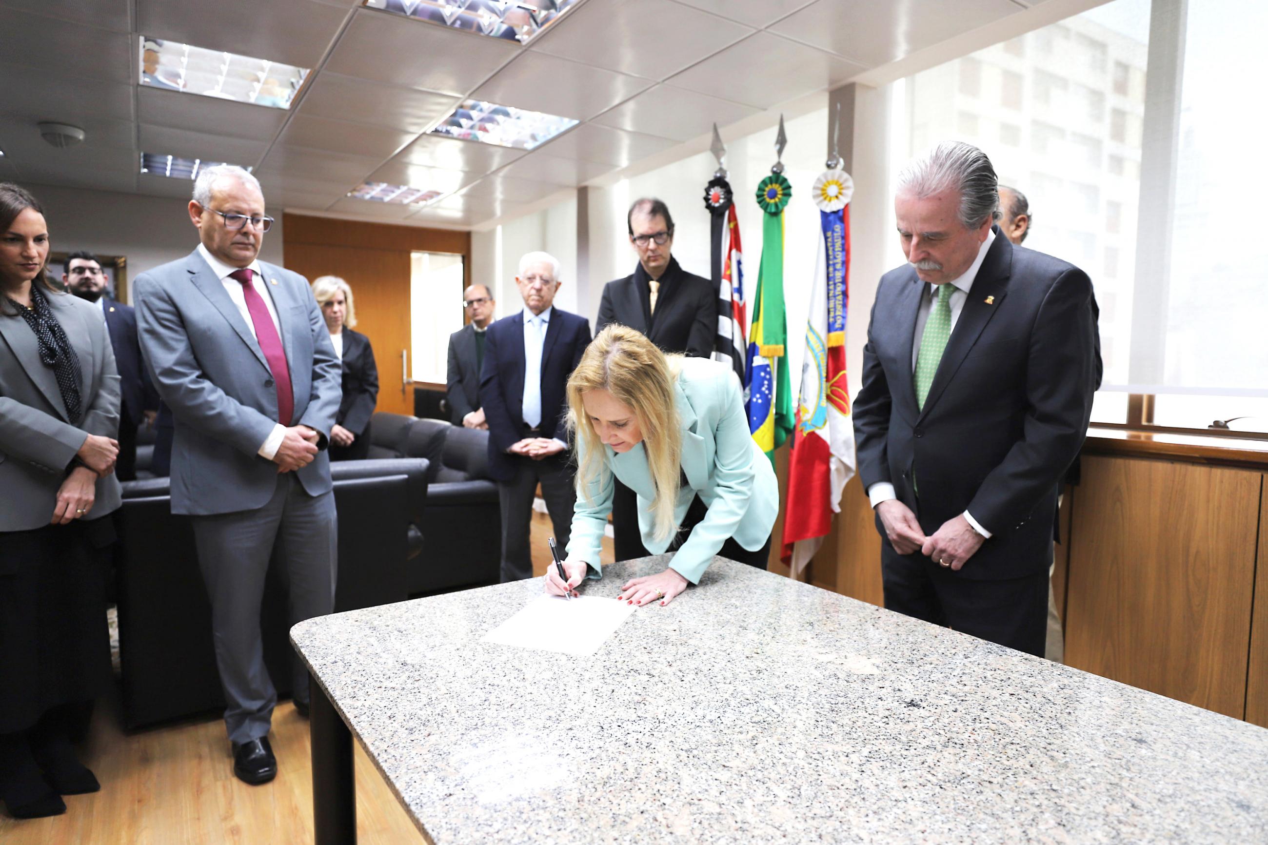 19/08/2025 – SÃO PAULO – A Conselheira Cristiana de Castro Moraes tomou posse, hoje (19/8), às 10h00, como Presidente do Tribunal de Contas do Estado de São Paulo (TCESP). Durante cerimônia, ocorrida no gabinete da Presidência do órgão, a Conselheira assinou o termo de posse administrativa e assume o posto em sucessão ao Conselheiro Roque Citadini, cuja aposentadoria foi publicada hoje (19/8), no Diário Oficial do TCE.