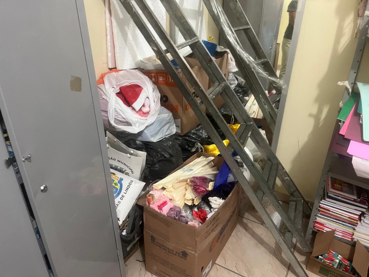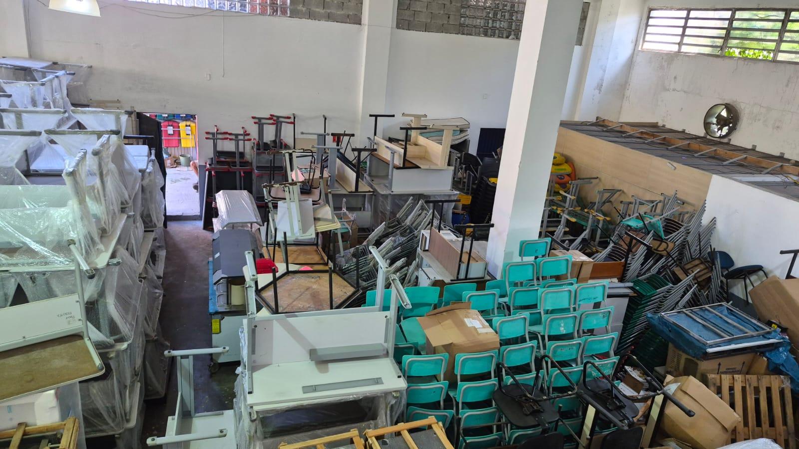 O ponto mais crítico, contudo, é a segurança. Praticamente 9 em cada 10 locais (89%) não possuem plano de contingência para incêndios ou enchentes, e 75% dos espaços operam sem o Auto de Vistoria do Corpo de Bombeiros (AVCB). No interior dessas estruturas insalubres, 78% das escolas mantêm materiais obsoletos ou inservíveis, enquanto 28% estocam materiais didáticos novos que nunca foram utilizados. Em uma unidade, os materiais armazenados impediam o acesso a extintores e, em outro local, impedia chegar até a mangueira de incêndio.