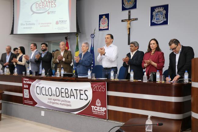 26/06/2025 – ILHA SOLTEIRA (SP) – Lideranças dos municípios jurisdicionados da região de Andradina participaram, na quinta-feira (26/6), em Ilha Solteira (SP), do penúltimo encontro da 29ª edição do Ciclo de Debates, promovido pelo Tribunal de Contas do Estado de São Paulo (TCESP), com Agentes Políticos e Dirigentes Municipais.