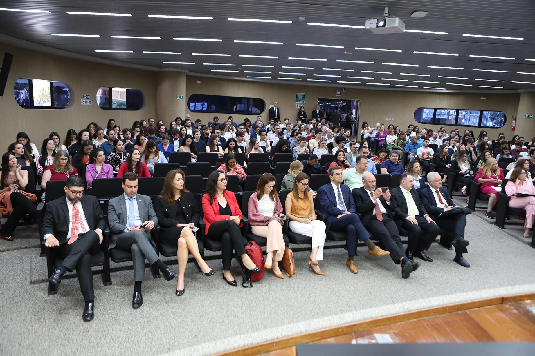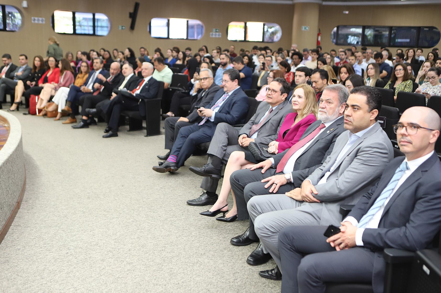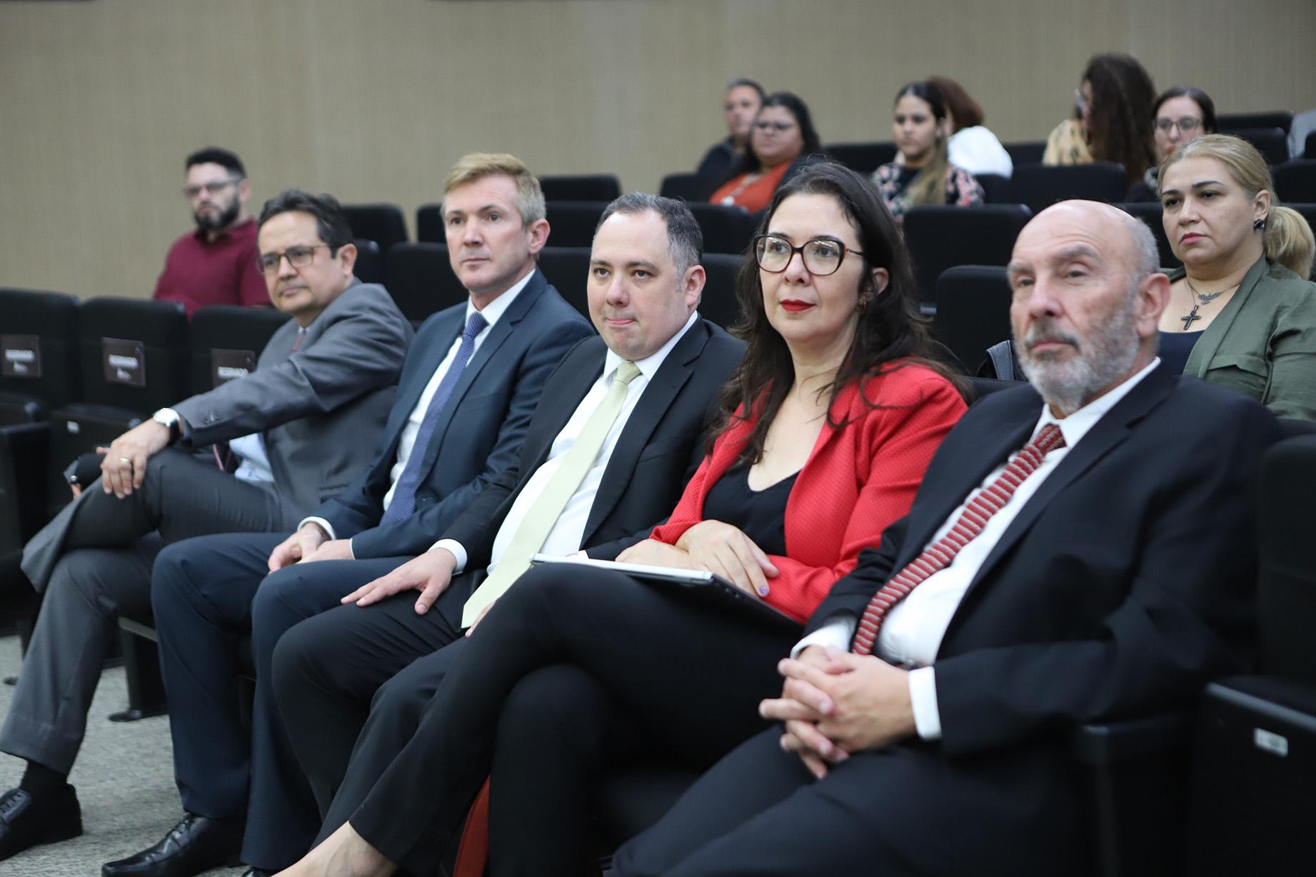 Dentre as autoridades presentes, compuseram a mesa o Presidente do TCEMG, Conselheiro Gilberto Diniz; o Presidente do IRB e Corregedor do Tribunal de Contas do Ceará (TCE-CE), Conselheiro Edilberto Pontes; o Desembargador do Tribunal Regional Federal da 6ª Região, Flávio Boson Gambogi; o Corregedor do Tribunal de Contas do Município de São Paulo (TCMSP), Conselheiro Ricardo Torres; e o Presidente de honra do Instituto de Direito Financeiro (IDFin), Régis Fernandes de Oliveira