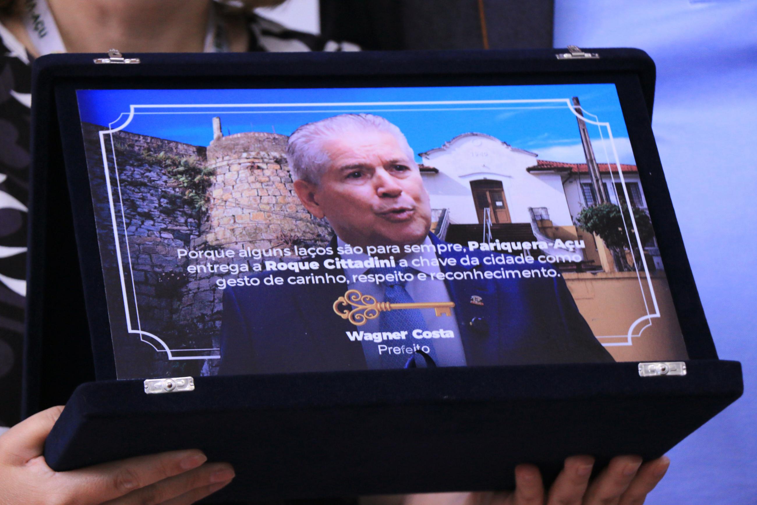 Ainda, na oportunidade, Roque Citadini também foi homenageado pelo Prefeito de Pariquera-Açu, Wagner Bento da Costa, com a entrega simbólica da chave do município, como uma forma de agradecimento pelos serviços prestados à população local.