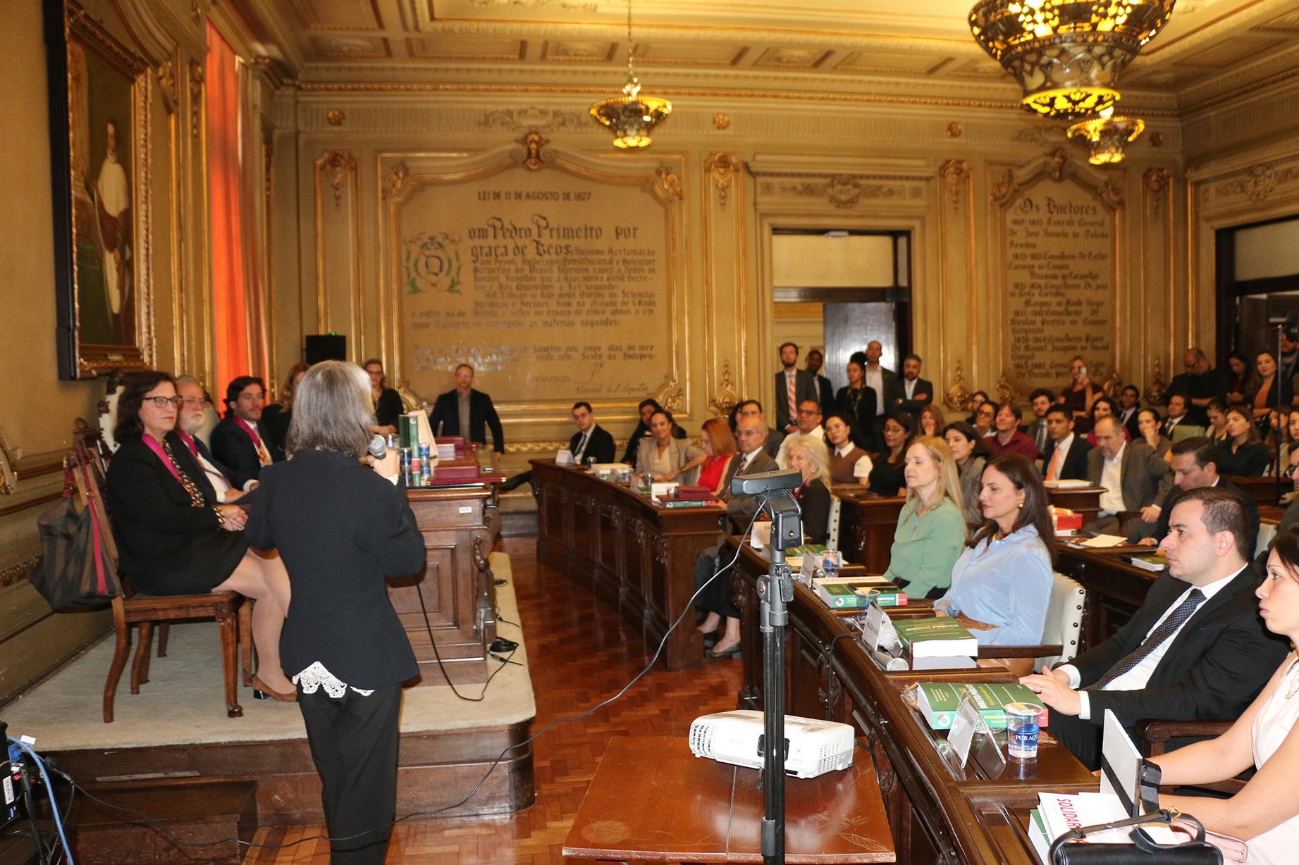 A programação teve início na Sala da Congregação com a outorga da Medalha Destaque Docente ‘Professor Dalmo Dallari’, concedida pela Associação Nacional dos Procuradores dos Estados e do Distrito Federal (ANAPE). A honraria foi agraciada à Ministra Cármen Lúcia, às professoras Patrícia Ulson Pizarro Werner, Maria Paula Dallari Bucci e Maria Garcia e aos professores Vicente Martins Prata Braga e Celso Campilongo.