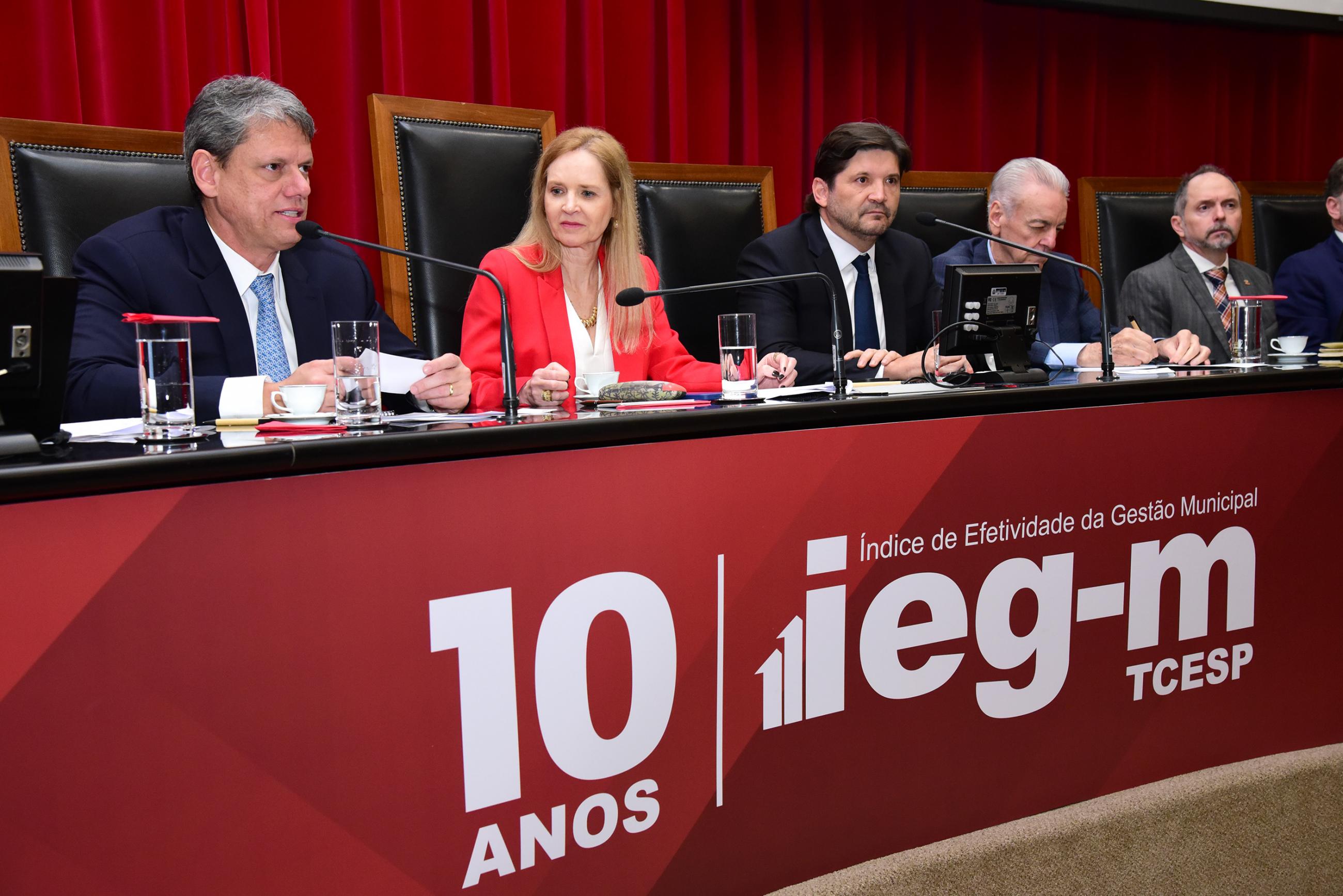 Compuseram a mesa principal do evento, a Presidente do TCESP, Conselheira Cristiana de Castro Moraes; o Coordenador e idealizador do IEG-M, Conselheiro Sidney Beraldo; o Governador de São Paulo, Tarcísio de Freitas; o Presidente da Assembleia Legislativa do Estado de São Paulo (Alesp), Deputado André do Prado; a Procuradora-Geral do Ministério Público de Contas (MPC), Leticia Formoso Delsin Matuck Feres; o Presidente do Tribunal de Contas do Município de São Paulo (TCM-SP), Domingos Dissei; o Conselheiro do TCM-SP, João Antonio da Silva Filho, que representou o Presidente da Associação dos Membros dos Tribunais de Contas do Brasil (Atricon), Conselheiro Edilson de Sousa Silva; o Coordenador do Corpo de Conselheiros Substituto-Auditores, Alexandre Manir Figueiredo Sarquis; o Procurador-Chefe da Fazenda do Estado junto ao TCESP, Denis Dela Vedova Gomes; o Presidente da Associação Paulista de Municípios, Fred Guidoni; e o Presidente da União dos Vereadores do Estado de São Paulo (UVESP), Sebastião Misiara.