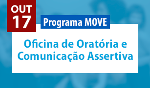 O Tribunal de Contas do Estado de São Paulo (TCESP) promoverá na sexta-feira (17/10), de forma on-line pelo Teams, exclusivo para servidoras das regionais, das 8h30 às 9h30, e de maneira presencial, na Sala do Memorial, das 11h00 às 12h00, a Oficina de Oratória e Comunicação Assertiva, como parte do calendário de atividades do programa MOVE (Mulheres, Oficinas, Vínculos e Experiências).