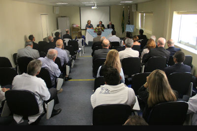 Após as homenagens, a placa inaugural foi descerrada pelos familiares do homenageado – a esposa, Ruth Baskauskas Scatena; os filhos Carlos Eduardo e Caroline; a nora Sofia Banuis Scatena e o genro Augusto Baunis.