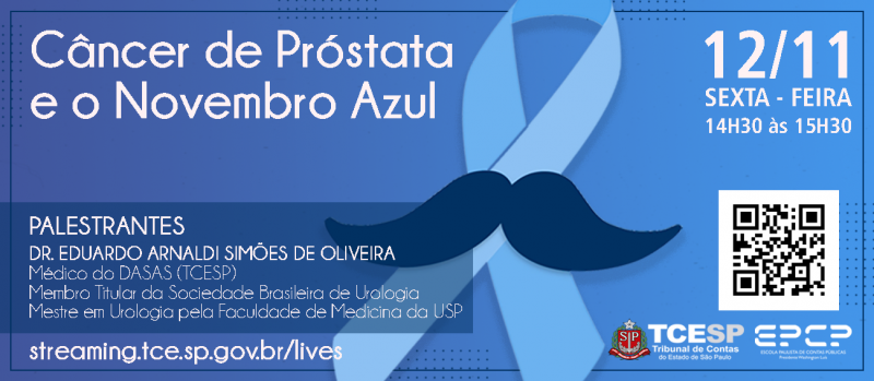 09/11/2021 – SÃO PAULO – Visando a conscientização acerca da necessidade da prevenção e da detecção precoce do câncer de próstata, o Tribunal de Contas do Estado de São Paulo (TCESP) promove, na sexta-feira (12/11), das 14h30 às 15h30, palestra com o tema ‘Câncer de Próstata e o Novembro Azul’.