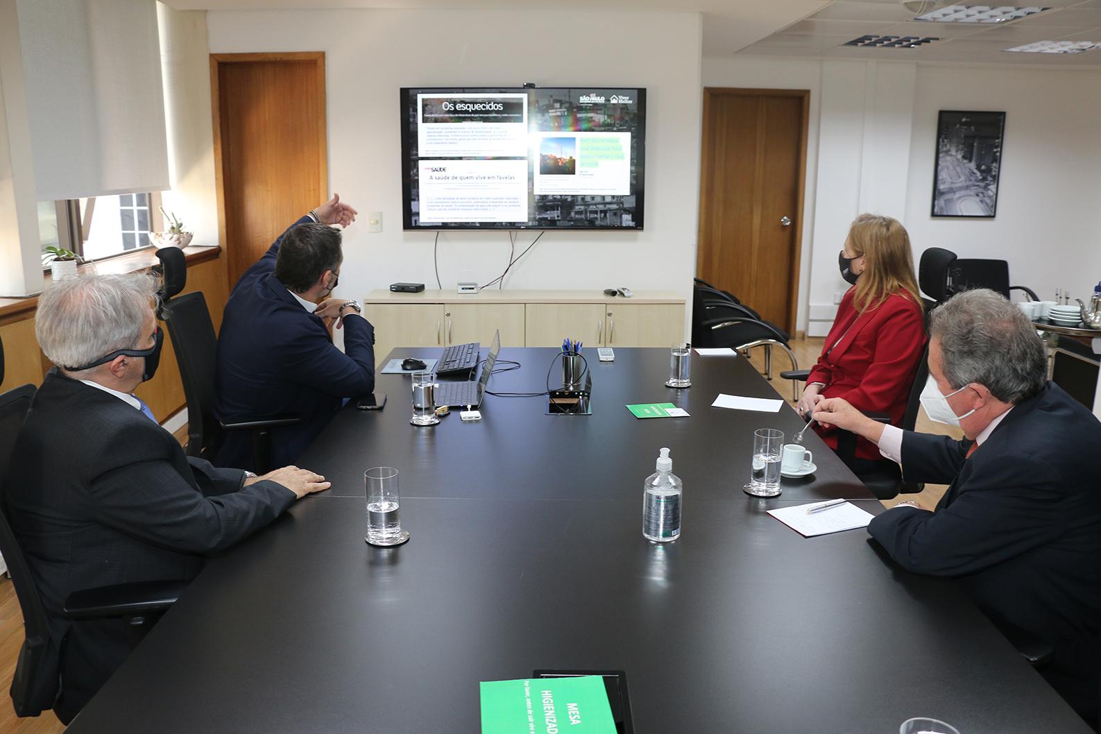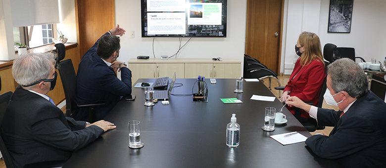 Os visitantes foram recepcionados pela Presidente do TCE, Conselheira Cristiana de Castro Moraes, pelo Secretário-Diretor Geral, Sérgio Ciquera Rossi, e pelo Assessor-Técnico Fernando Tormena. Na oportunidade, o Secretário da Habitação apresentou os principais projetos governamentais em implantação e ações da Pasta voltadas a mitigar os efeitos da pandemia na área.