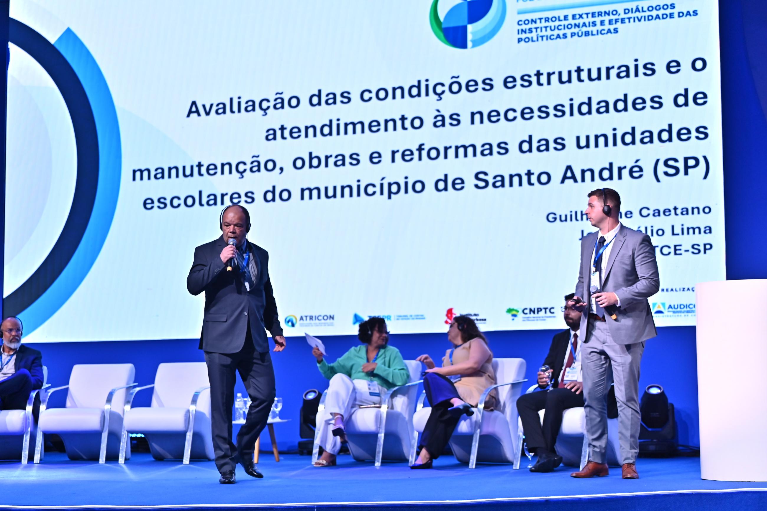 12/11/2024 – FOZ DO IGUAÇU – Os Auditores do Controle Externo no TCE, José Célio da Silva Lima e Guilherme Luzes Ribeiro Caetano, proferiram, ontem (11/11), em Foz do Iguaçu, palestras, como parte das atividades do IX Encontro Nacional dos Tribunais de Contas (IX ENTC). Na oportunidade, integraram o painel com o tema ‘Política Educacional: Desafios e Perspectivas para o Controle Externo’.