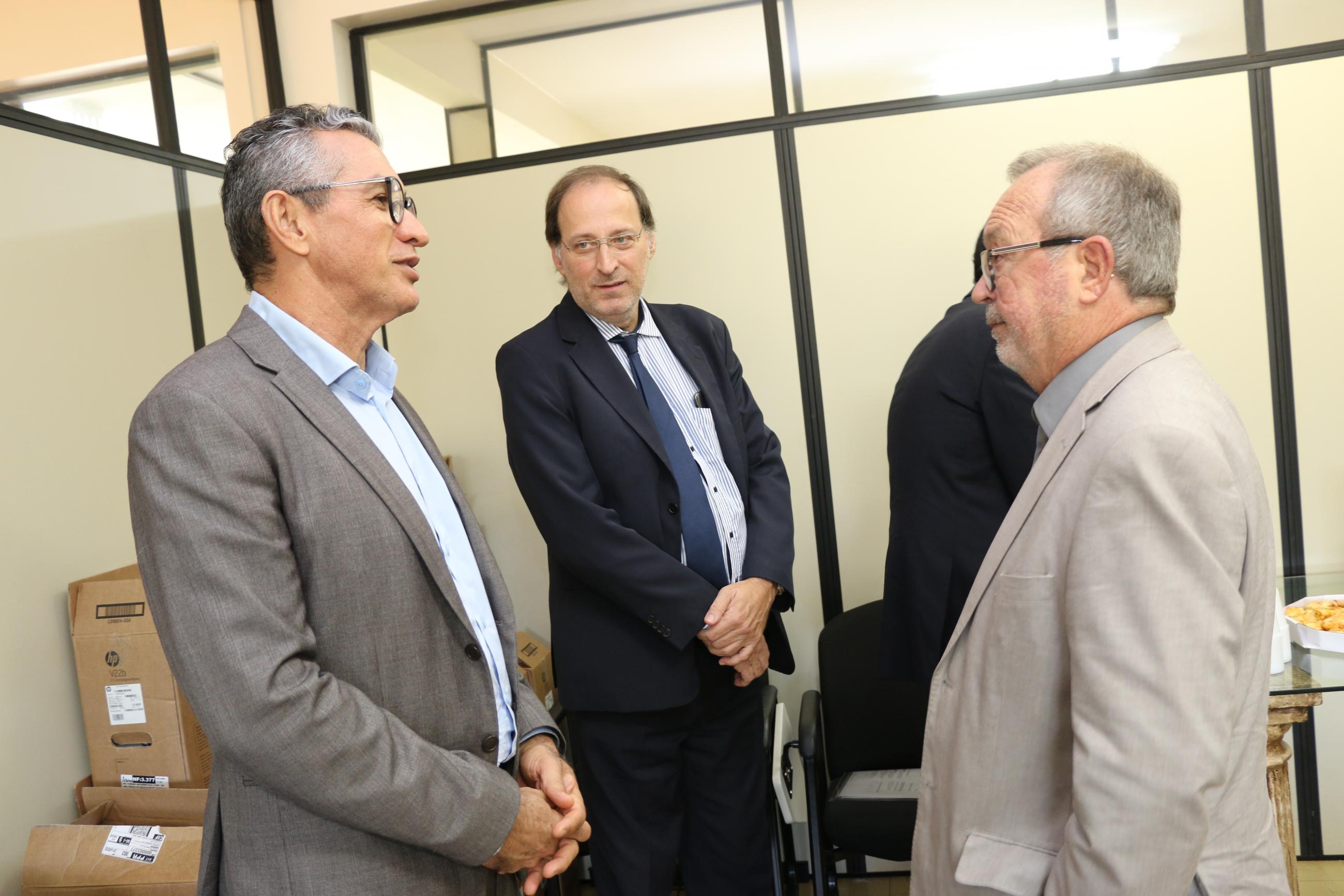 Acompanhado pelo Procurador-Geral do Ministério Público de Contas junto ao TCE, Thiago Pinheiro Lima, e pelo Diretor-Geral de Administração, Carlos Eduardo Malek, o Presidente do Tribunal de Contas foi recepcionado pelo Diretor-Regional Maurides Tedeschi e pelos servidores que prestam serviço na Regional.