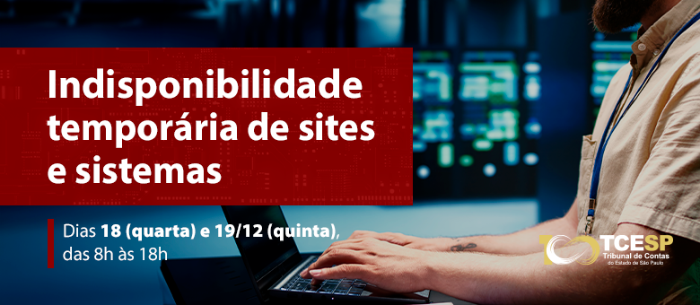 Cumprindo seu dever de constante melhoria da segurança e disponibilidade dos recursos de tecnologia da informação, o DTI, devidamente autorizado pela Presidência, atualizará alguns equipamentos de rede do prédio Anexo II (sala-cofre) nos dias 18 e 19 de dezembro de 2024. Dessa forma, poderão ocorrer indisponibilidades temporárias de acesso a sites e sistemas do TCESP, bem como de acesso à internet, entre 8h e 18h dessas datas.