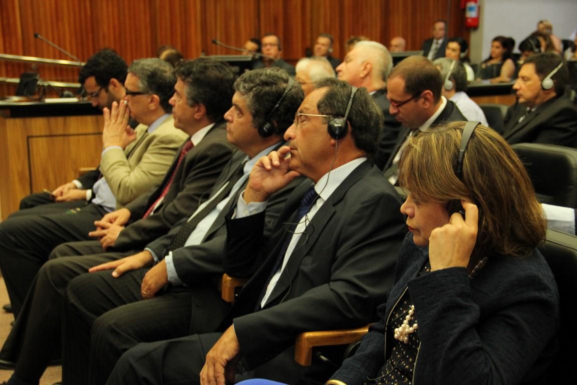 Compuseram a mesa solene o Diretor da Escola Superior de Estudos Jurídicos da Universidade de Bolonha (Itália), Professor Luca Mezzetti, que proferiu a palestra principal; o Professor Titular de Direito Constitucional da Universidade de Bolonha, Giovanni Luchetti; o Professor Associado da Pontifícia Universidade Católica de São Paulo (PUC-SP), Marcelo Figueiredo e a Professora de Direito Constitucional da Universidade de São Paulo (USP), Monica Herman Caggian.