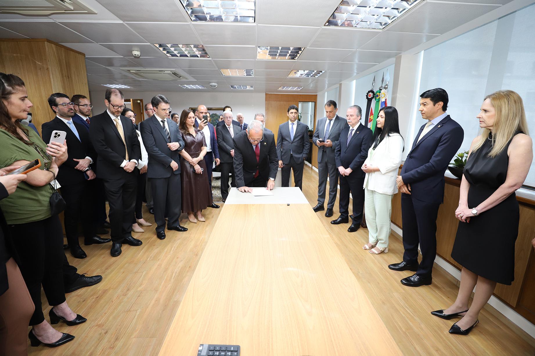27/11/2025 – SÃO PAULO – O Tribunal de Contas do Estado de São Paulo (TCESP) realizou na quinta-feira (26/11), às 11h00, na sala da Presidência, na Capital, a cerimônia de posse administrativa do Conselheiro Carlos Cezar.