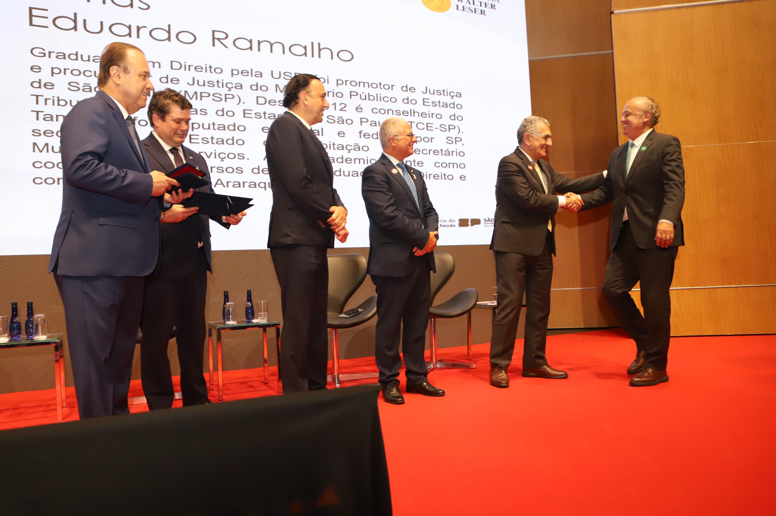 19/11/2025 – SÃO PAULO – O Vice-Presidente do Tribunal de Contas do Estado de São Paulo (TCESP), Conselheiro Dimas Ramalho, recebeu, na terça-feira (18/11), a Medalha de Honra e Mérito da Gestão Pública em Saúde ‘Walter Leser’. A solenidade, às 18h00, na Sala São Paulo, homenageou 25 autoridades públicas e 5 entidades que colaboraram para a melhoria dos serviços públicos na área da saúde.