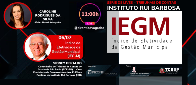 Os trabalhos integram uma série de lives que tiveram início no dia 30 de junho e que têm como propósito tratar do controle externo e temas de relevância trabalhados pelos Tribunais de Contas do país. As atividades podem ser acompanhadas por meio do perfil @pirontiadvogados_.