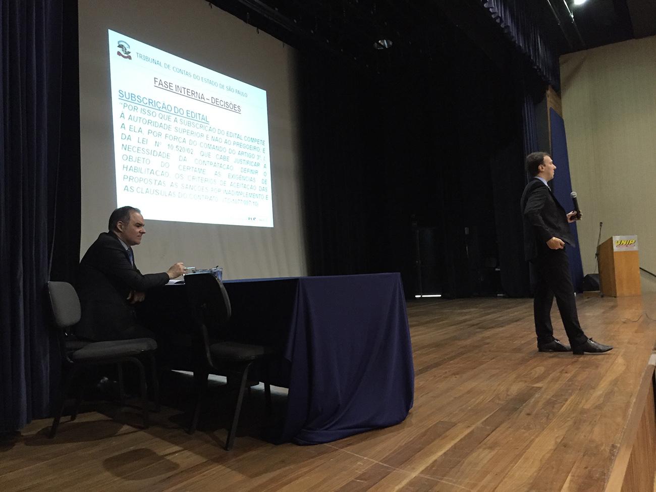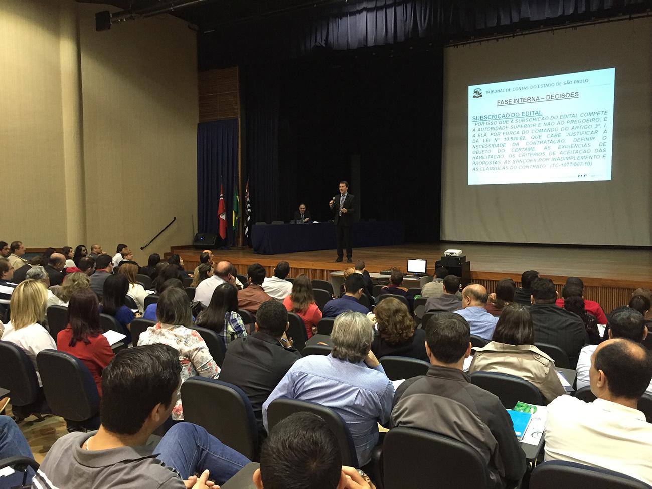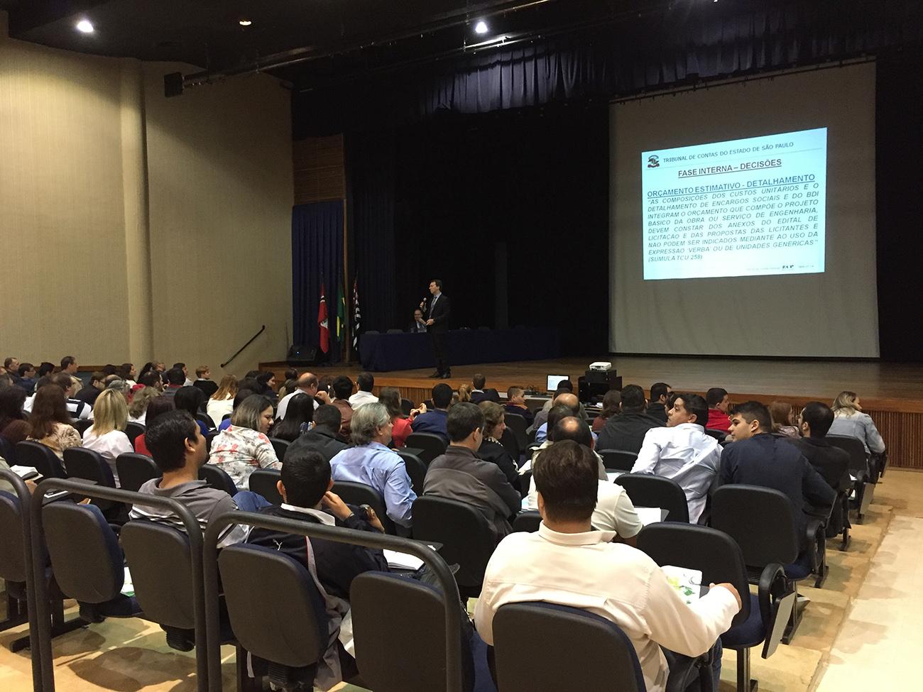 22/06/16 – SÃO JOSÉ DO RIO PRETO – Representantes de 34 (trinta e quatro) órgãos estaduais jurisdicionados do Tribunal de Contas do Estado de São Paulo (TCESP) na região de São José do Rio Preto participaram, na terça-feira (21/6), das 9h00 às 15h00, no teatro da Universidade Paulista (UNIP), em São José do Rio Preto, do curso de capacitação ‘Fiscalização de Contratos e Obras Públicas em Órgãos Estaduais’.