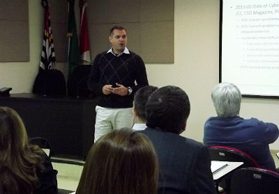 29/07/14 – SÃO PAULO – A Escola Paulista de Contas Públicas ‘Presidente Washington Luís’ (EPCP), promoveu nesta terça-feira (29/7), às 10h00, o curso ‘Explorando Recursos de TI: Roubo de informações pela internet’. Voltado aos servidores do TCE com sede na capital, o curso teve como palestrante o Chefe da Seção Técnica de Segurança da Informação, Fábio Correa Xavier.