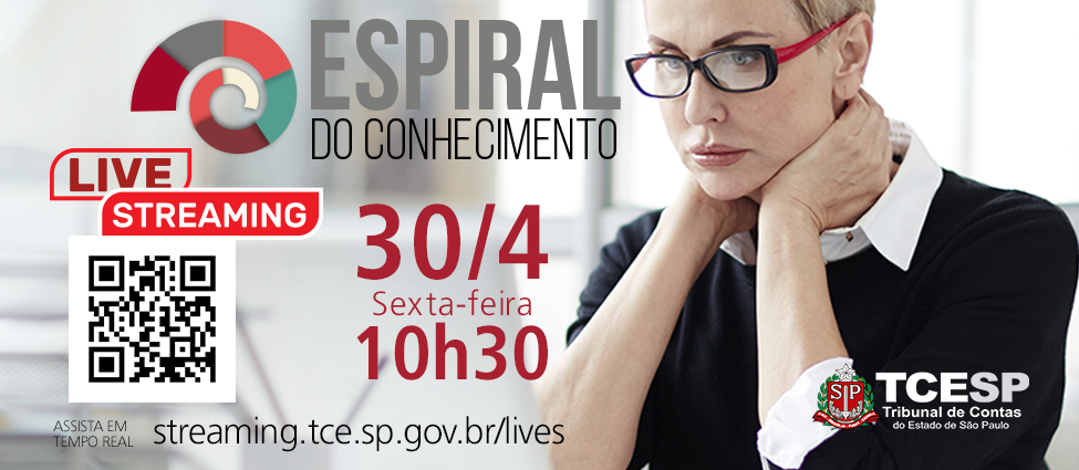 LIVE: Espiral do Conhecimento Data: 30/04/2021 Horário: 10h30 às 12h00 Público interno: Servidores do TCE Assista em tempo real: streaming.tce.sp.gov.br/lives