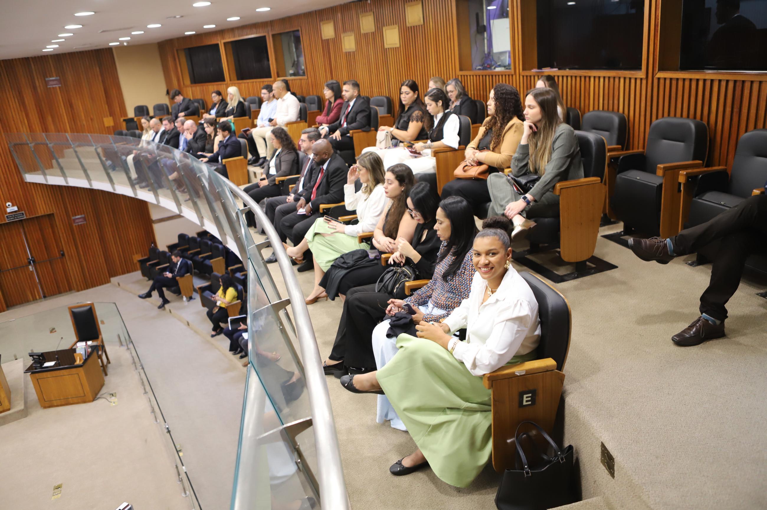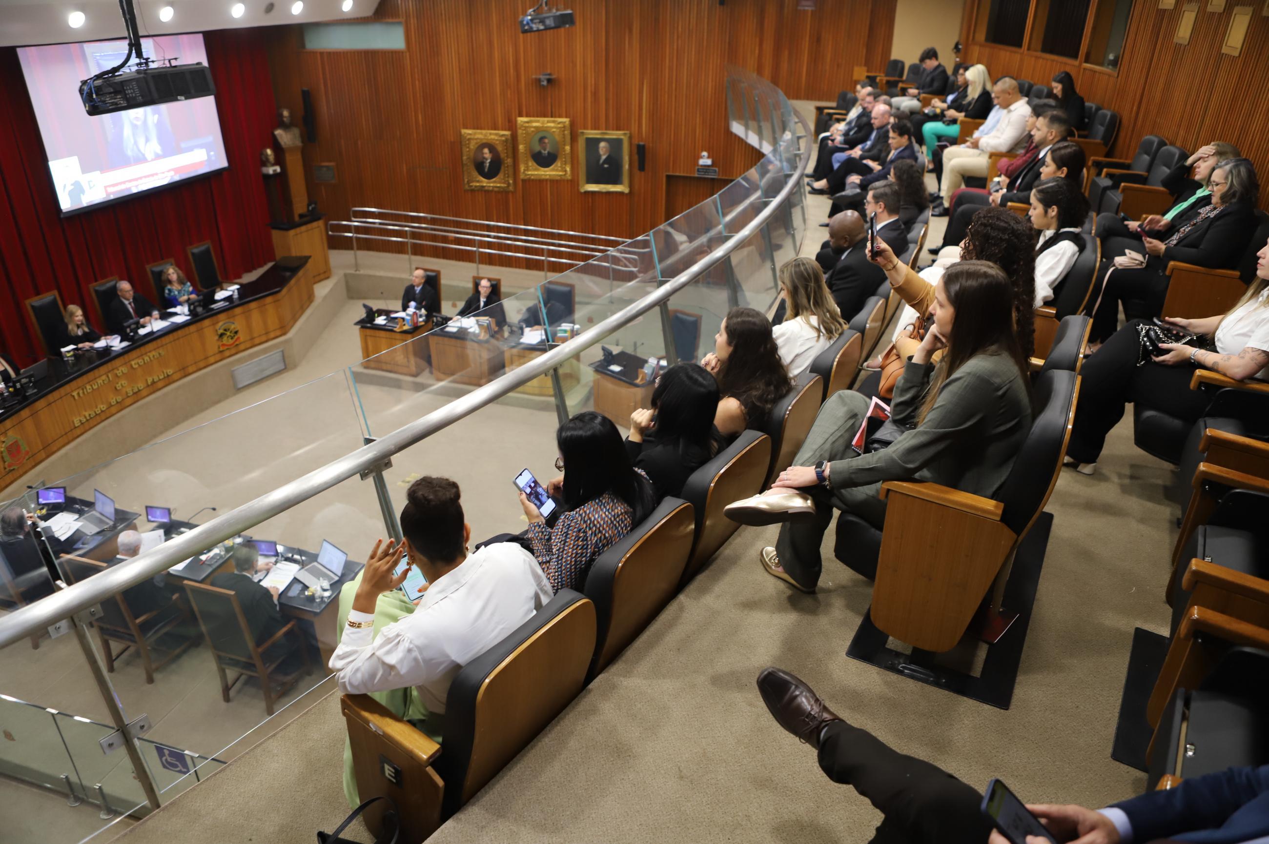 Encerrando as atividades do programa, os estudantes acompanharam uma sessão ordinária do Pleno do TCESP, observando a atuação dos membros do colegiado e o funcionamento das deliberações que integram o cotidiano institucional da Corte de Contas paulista.