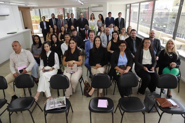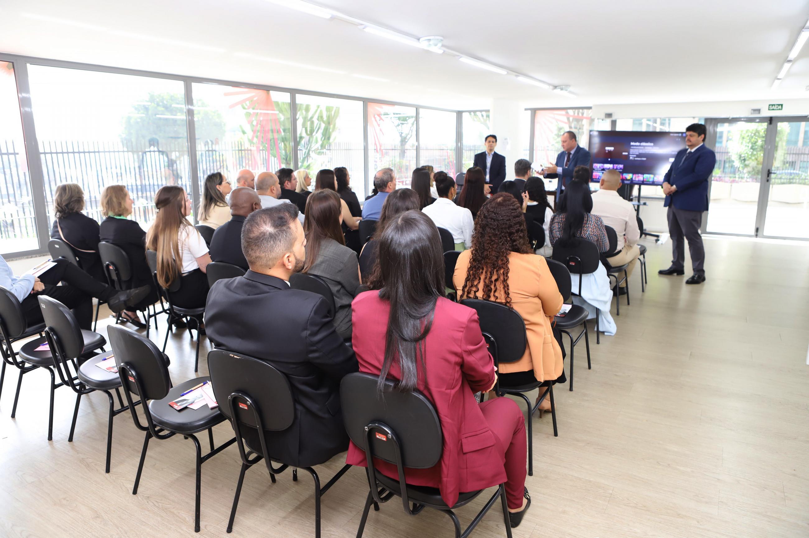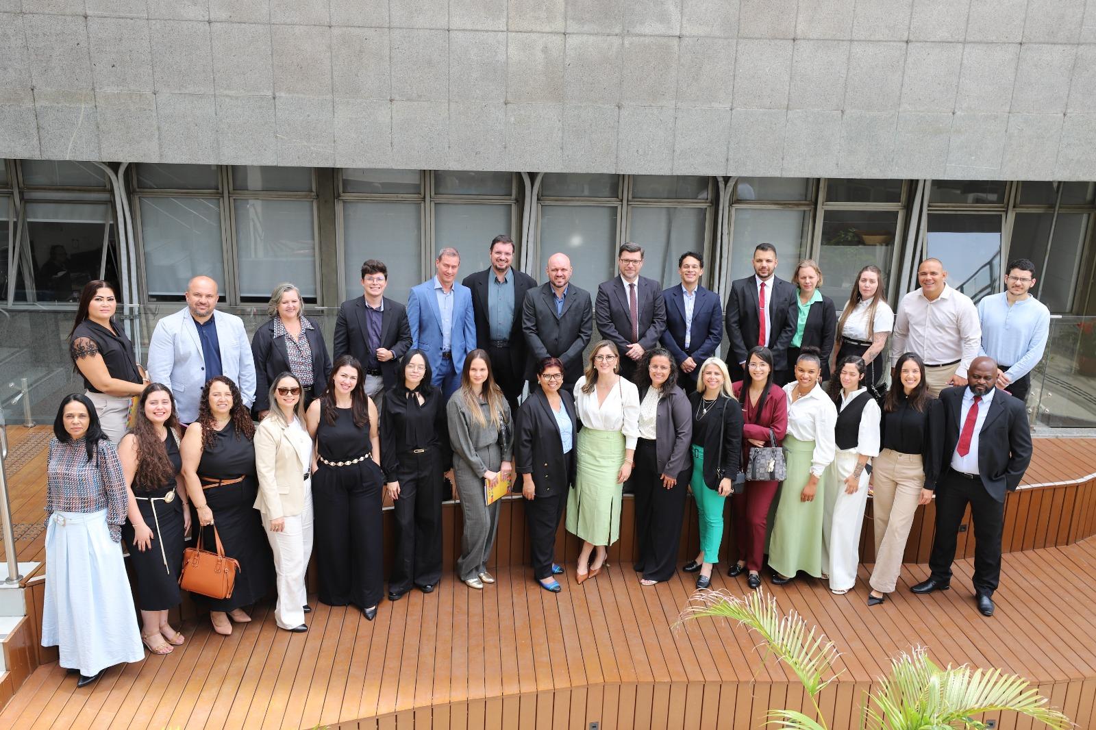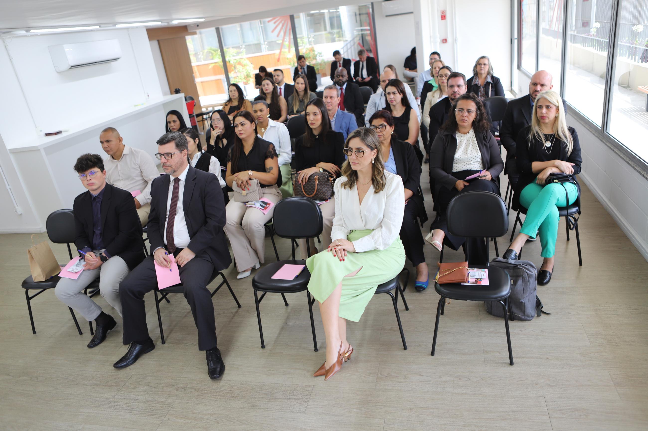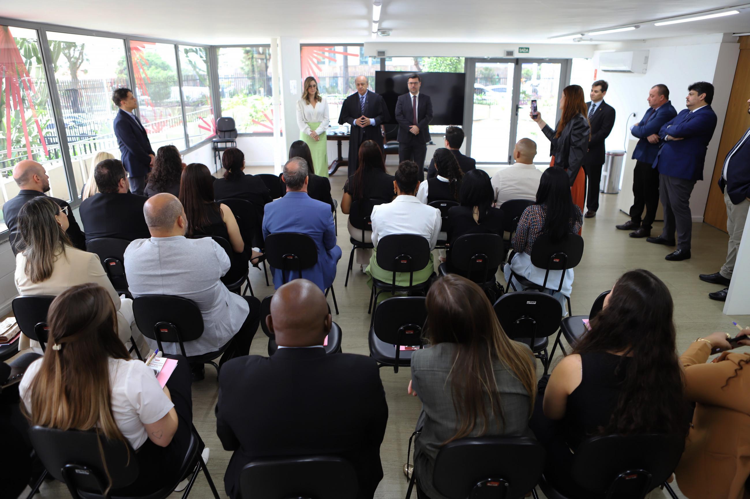 A comitiva foi acompanhada pelo Coordenador do curso, Professor Gustavo Henrique Schneider Nunes, e pela Professora Mariana Passafaro Mársico Azadinho, sendo recepcionada pelo Vice-Presidente do TCESP, Conselheiro Dimas Ramalho, e equipe técnica.