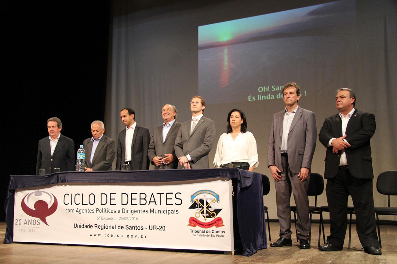 27/02/2016 – SANTOS – Reunidos às 14h00 no Teatro Guarany em Santos, gestores municipais e lideranças políticas da região jurisdicionada do Tribunal de Contas do Estado de São Paulo (TCESP) na Baixada Santista, participaram dos debates da 20º edição do Ciclo de Debates com Agentes Políticos e Dirigentes Municipais. Na oportunidade foram tratadas as boas praticas da administração pública frente ao ano eleitoral.