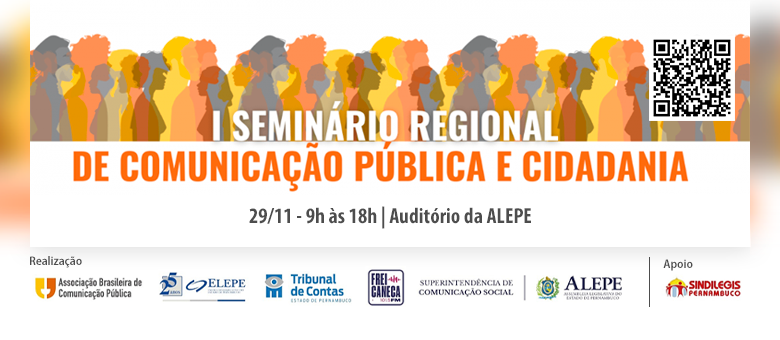 O I Seminário Regional de Comunicação Pública e Cidadania é uma realização da ABCPública Pernambuco em conjunto com a Assembleia Legislativa de Pernambuco (ALEPE), a Escola do Legislativo de Pernambuco (ELEPE), a Rádio Frei Caneca FM, o Tribunal de Contas do Estado de Pernambuco (TCE-PE), com o apoio do Sindicato dos Servidores no Poder Legislativo do Estado de Pernambuco (Sindilegis-PE) e em parceria com a Universidade Federal Rural de Pernambuco (UFRPE), o Observatório de Mídia da Universidade Federal de Pernambuco (UFPE), a UNINASSAU e a Universidade Católica de Pernambuco (Unicap).