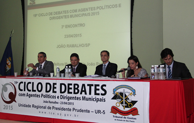 24/04/15 – JOÃO RAMALHO – Debater com os gestores e lideranças políticas as boas práticas da administração pública, as novas normatizações e legislação, e a correta prestação de contas dos recursos públicos. Foi com este objetivo que representantes de 36 municípios jurisdicionados do Tribunal de Contas do Estado de São Paulo (TCESP) da região de Presidente Prudente (UR-05) se reuniram na quinta-feira (23/4), em João Ramalho, para participar do terceiro encontro do 19º Ciclo de Debates com Agentes Políticos e Dirigentes Municipais.
