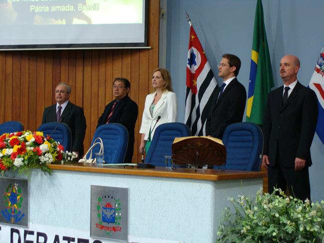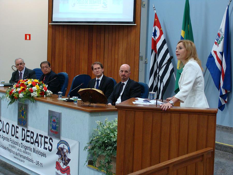 A Presidente do Tribunal de Contas, Conselheira Cristiana de Castro Moraes, foi recepcionada pelo Presidente da Câmara Municipal, Vereador Nivaldo Batista de Oliveira e pelo Prefeito Municipal, Pedro Manoel Callado Moraes que, junto com o Procurador-Geral do Ministério Público de Contas (MPC), Rafael Neubern Demarchi Costa e com o Diretor do Departamento de Supervisão da Fiscalização II, Alexandre Teixeira Carsola, compuseram a mesa diretora dos trabalhos.