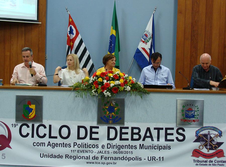 07/08/2015 – JALES – Prefeitos, Vereadores, ordenadores de despesas e servidores públicos de 43 (quarenta e três) municípios jurisdicionados da Unidade Regional do TCE em Fernandópolis (UR-11) estiveram presentes, na quinta-feira (6/8), às 14h00, na Câmara Municipal de Jales, região Noroeste do Estado, para participarem das atividades do décimo primeiro encontro do Ciclo de Debates com Agentes Políticos e Dirigentes Municipais.