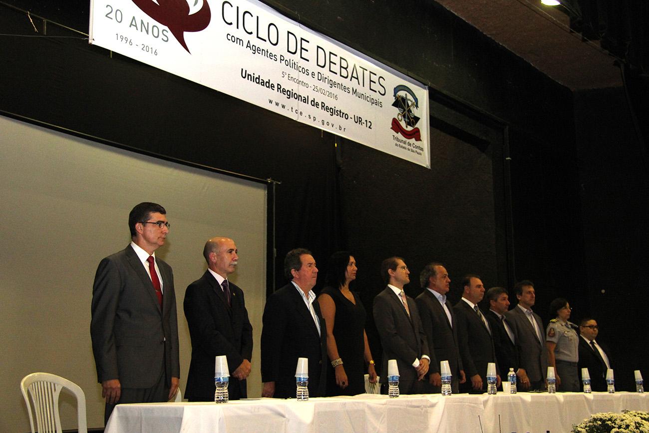 Participaram da mesa de abertura ao lado do Presidente do TCE, o Prefeito de Registro, Gilson Wagner Fantin; o Presidente da Câmara de Registro, Vereador Osvaldo Sérgio Machado; o Procurador-Geral do Ministério Público de Contas (MPC), Rafael Neubern Demarchi Costa; o Secretário-Diretor Geral, Sérgio Ciquera Rossi; Diretor Técnico de Departamento (DSF-I), Antonio Bento de Melo e o Diretor-Técnico da Unidade Regional de Registro, Antonio Viveiros.