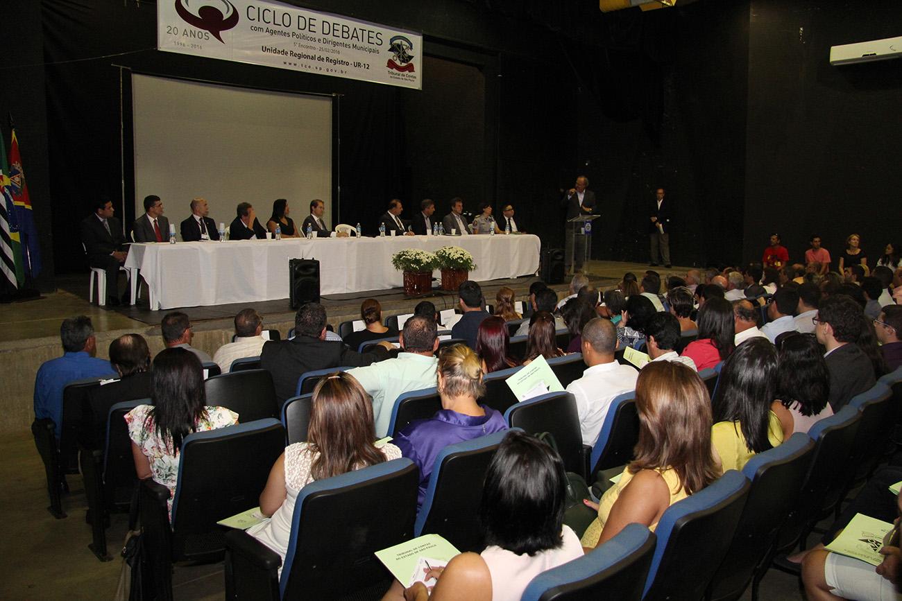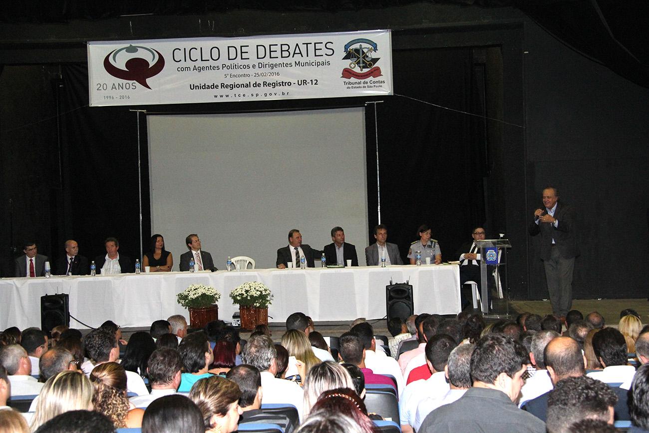 29/02/2016 - SÃO PAULO – Cerca de 250 representantes de 15 (quinze) municípios jurisdicionados do Tribunal de Contas do Estado de São Paulo (TCESP) na região do Litoral Sul paulista, participaram, às 10h00, no Teatro Wilma Bertelli, em Registro, do quinto encontro da 20ª edição do Ciclo de Debates com Agentes Políticos e Dirigentes Municipais.