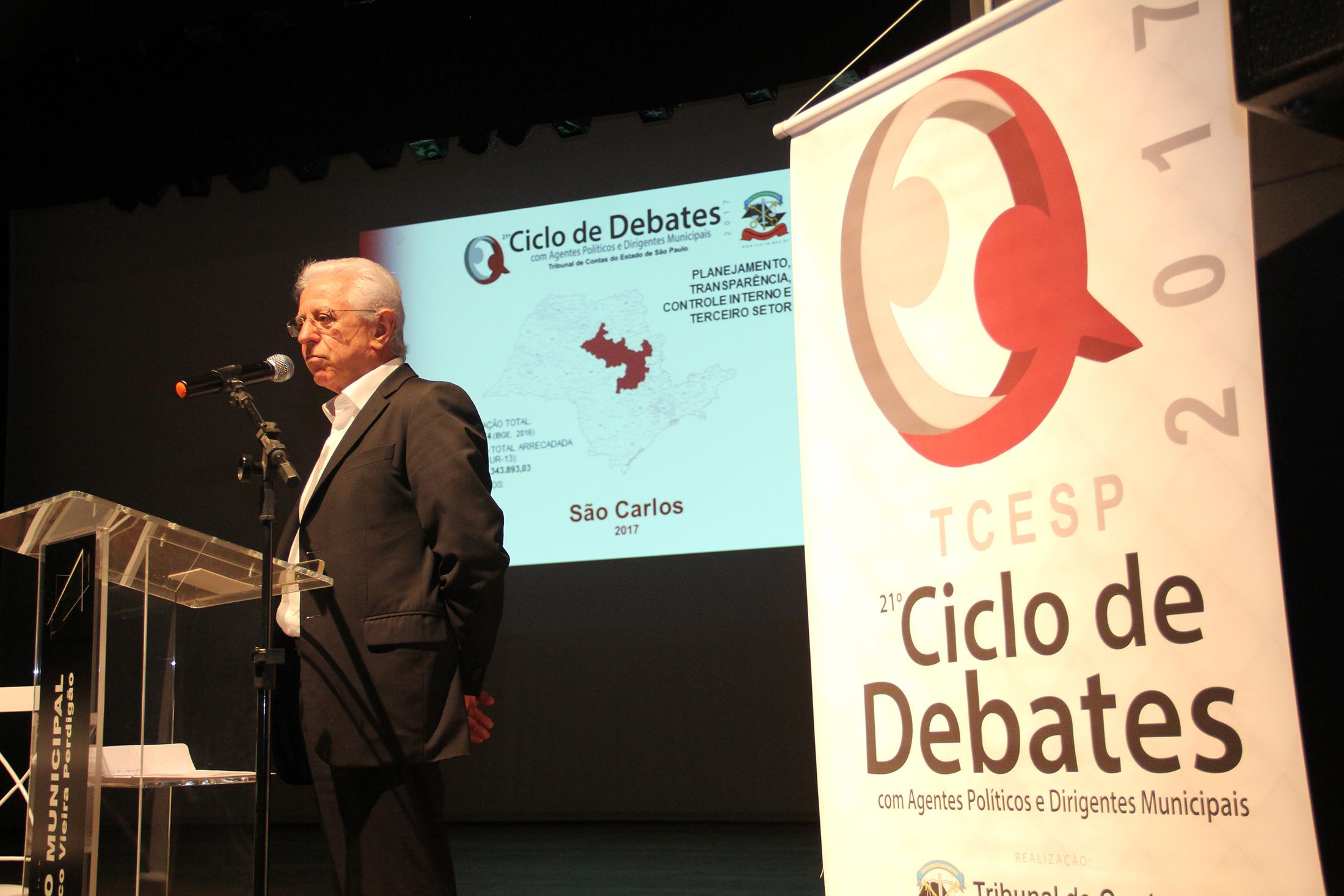 22/05/2017 – SÃO CARLOS – Com o objetivo de orientar os gestores públicos sobre temas referentes às áreas de planejamento, transparência e controle interno, o Tribunal de Contas do Estado de São Paulo (TCESP) realizou, na quinta-feira (18/5), o quarto encontro da 21ª edição do Ciclo de Debates com Agentes Políticos e Dirigentes Municipais.