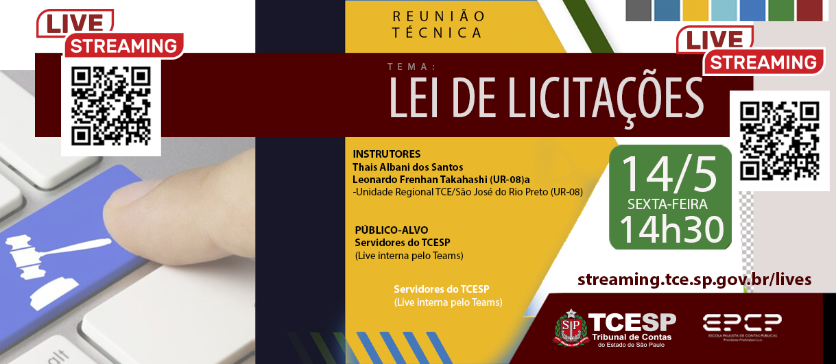 Na sexta-feira (14/5), no mesmo horário, o terceiro encontro da série terá como orientadores os técnicos Thais Albani dos Santos e Leonardo Frenhan Takahashi, ambos servidores da da Unidade Regional do TCE em São José do Rio Preto (UR-08).