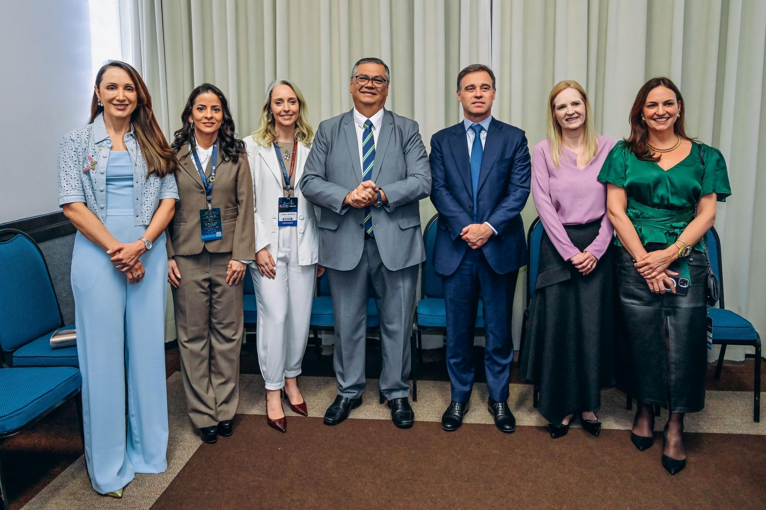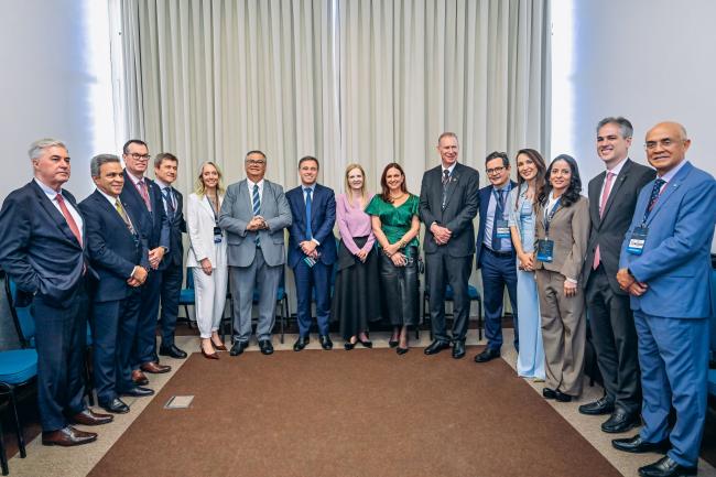 Os ministros Dino e Mendonça foram recepcionados por uma comitiva de membros dos Tribunais do Brasil, incluindo a Presidente do Tribunal de Contas do Estado de São Paulo (TCESP), Cristiana de Castro Moraes; o Conselheiro Maxwell Borges de Moura Vieira; e a Procuradora-Geral do Ministério Público de Contas, Leticia Formoso Delsin Matuck Feres.