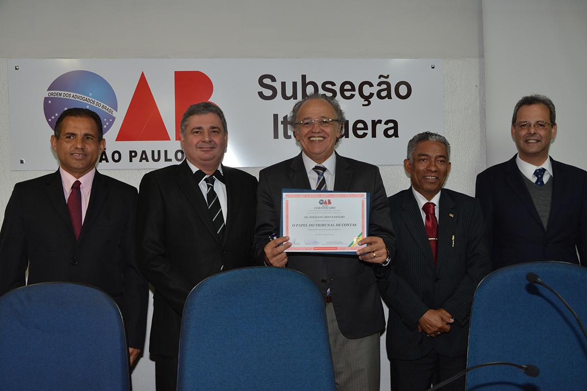 Ao lado do Presidente do TCE e da subseção da OAB/Itaquera, compuseram a mesa solene o Vice-Presidente da Subseção, João Marcos Ultramar Quinteiro; o Secretário Geral e a Secretária Adjunta, Idael Gomes Filho e Vera Silvia Ferreira Teixeira Ramos e o Tesoureiro, Eduardo Correa da Silva.