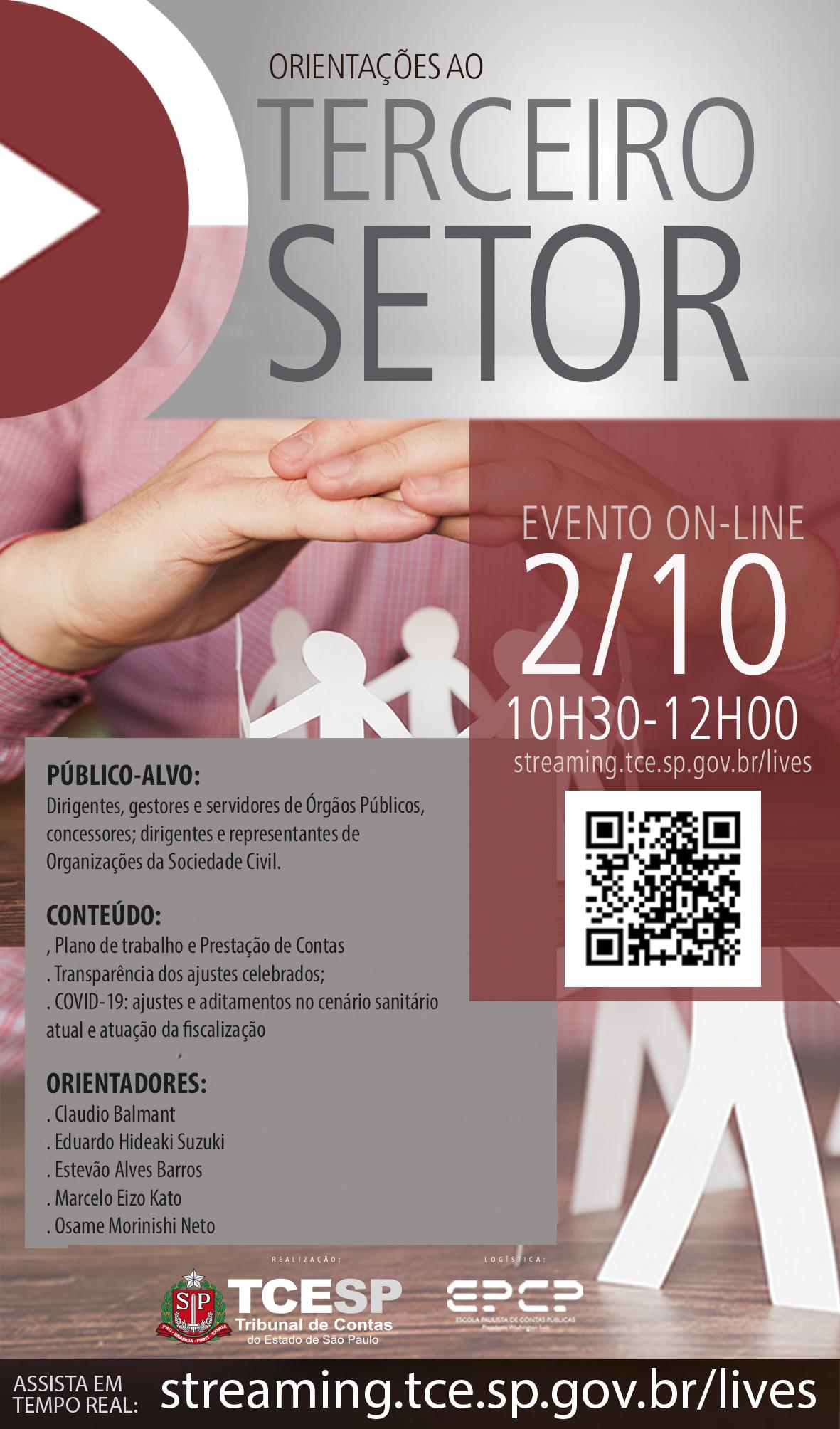 25/09/2020 – SÃO PAULO – O Tribunal de Contas do Estado de São Paulo (TCESP), em seu papel pedagógico, promoverá, no dia 2/10, das 10h30 às 12h00, curso on-line para orientar gestores e servidores sobre repasses ao Terceiro Setor.