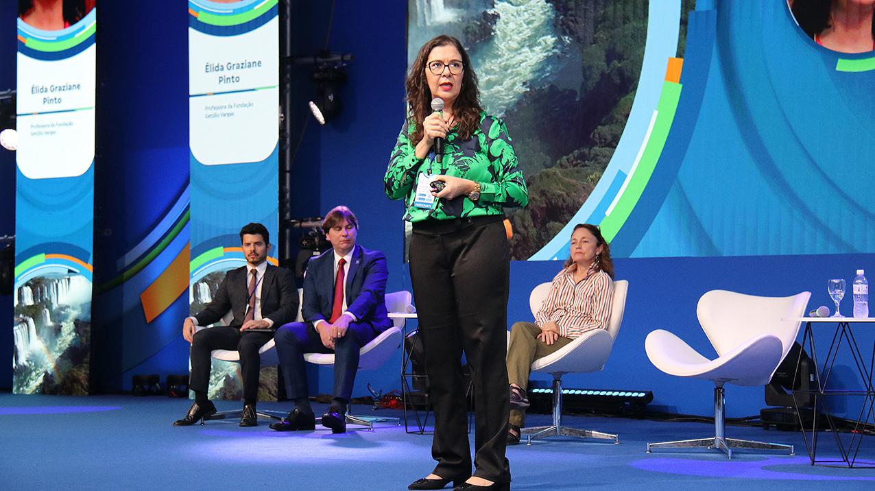 Professora da Fundação Getúlio Vargas (FGV), Élida Graziane Pinto iniciou sua palestra com uma citação impactante de Robinson e Acemoglu, do livro ‘Por que as Nações Fracassam’. “Os países tornam-se estados falidos não em virtude de sua geografia ou cultura, mas em função do legado de instituições extrativistas, que concentram o poder e a riqueza nas mãos de quem detém o controle do Estado, preparando o terreno para agitação social, conflitos e guerra civil”. A partir dessa reflexão, lançou um questionamento central: por que o Brasil, com tanto potencial, enfrenta crises recorrentes?
