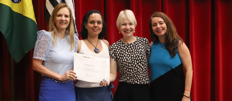 Participaram da mesa de trabalhos o Presidente do TCE, Conselheiro Renato Martins; a Conselheira-Corregedora, Cristiana de Castro Moraes; a Diretora da Diretoria de Saúde e Assistência Social (DASAS), Fernanda Borges Keid; e a Ouvidora da Mulher do TCESP, Mariana Freitas de Carvalho Florio Rosa.