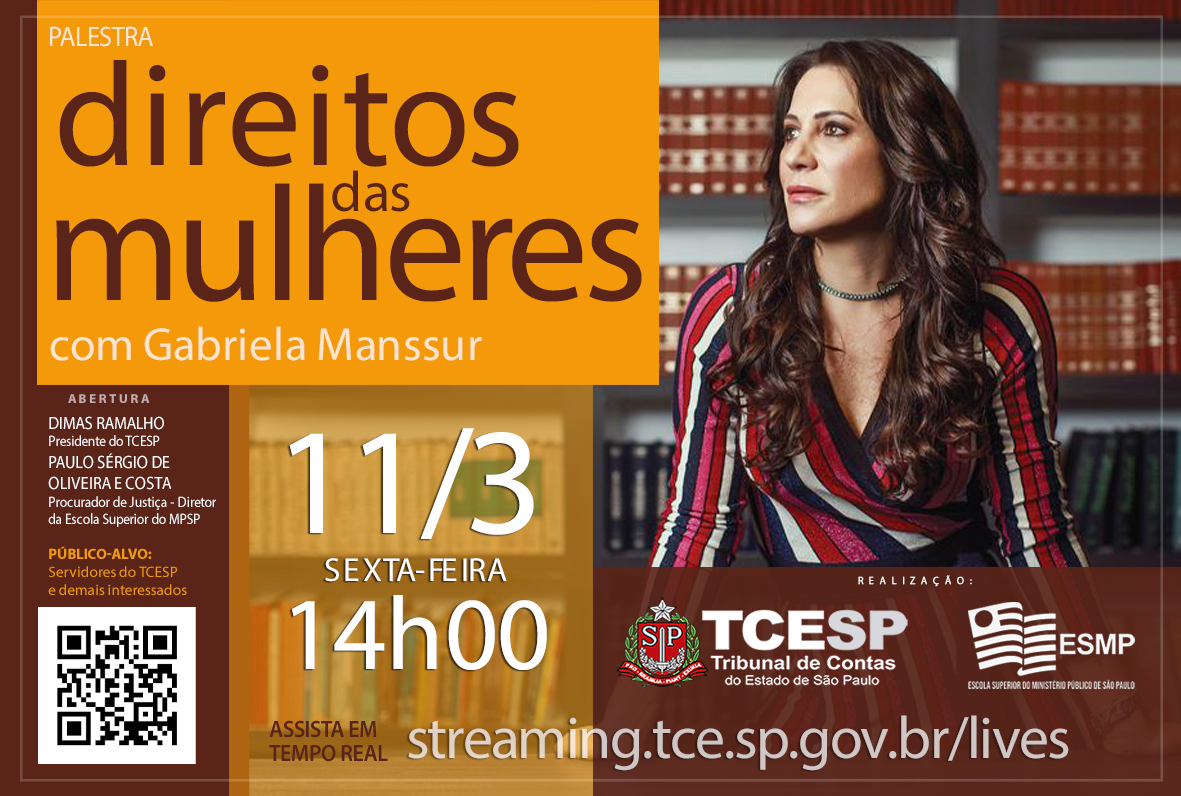 A convidada será a Promotora de Justiça do Estado de São Paulo e Especialista na Defesa e na Promoção dos Direitos das Mulheres, Gabriela Manssur. Com mais de 20 anos de trabalho dedicado à defesa das mulheres, Manssur é uma das vozes mais atuantes deste tema no Brasil e, em 2019, foi eleita pela Revista Forbes como uma das 20 mulheres mais poderosas do país.