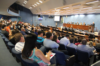Na quinta-feira (14/2), o TCE realizou, na Câmara de Campinas, o sexto encontro promovido com o objetivo de apresentar aos jurisdicionados a metodologia e o processo de implantação e esclarecer dúvidas quanto à sua adoção já no ano de 2015. Cerca de 300 (trezentas) pessoas – Prefeitos, Vereadores, Secretários e gestores públicos - para participar da palestra ‘Aspectos Operacionais do Índice Efetividade da Gestão Municipal (IEGM’) para explicar a metodologia, o processo de implantação do medidor.
