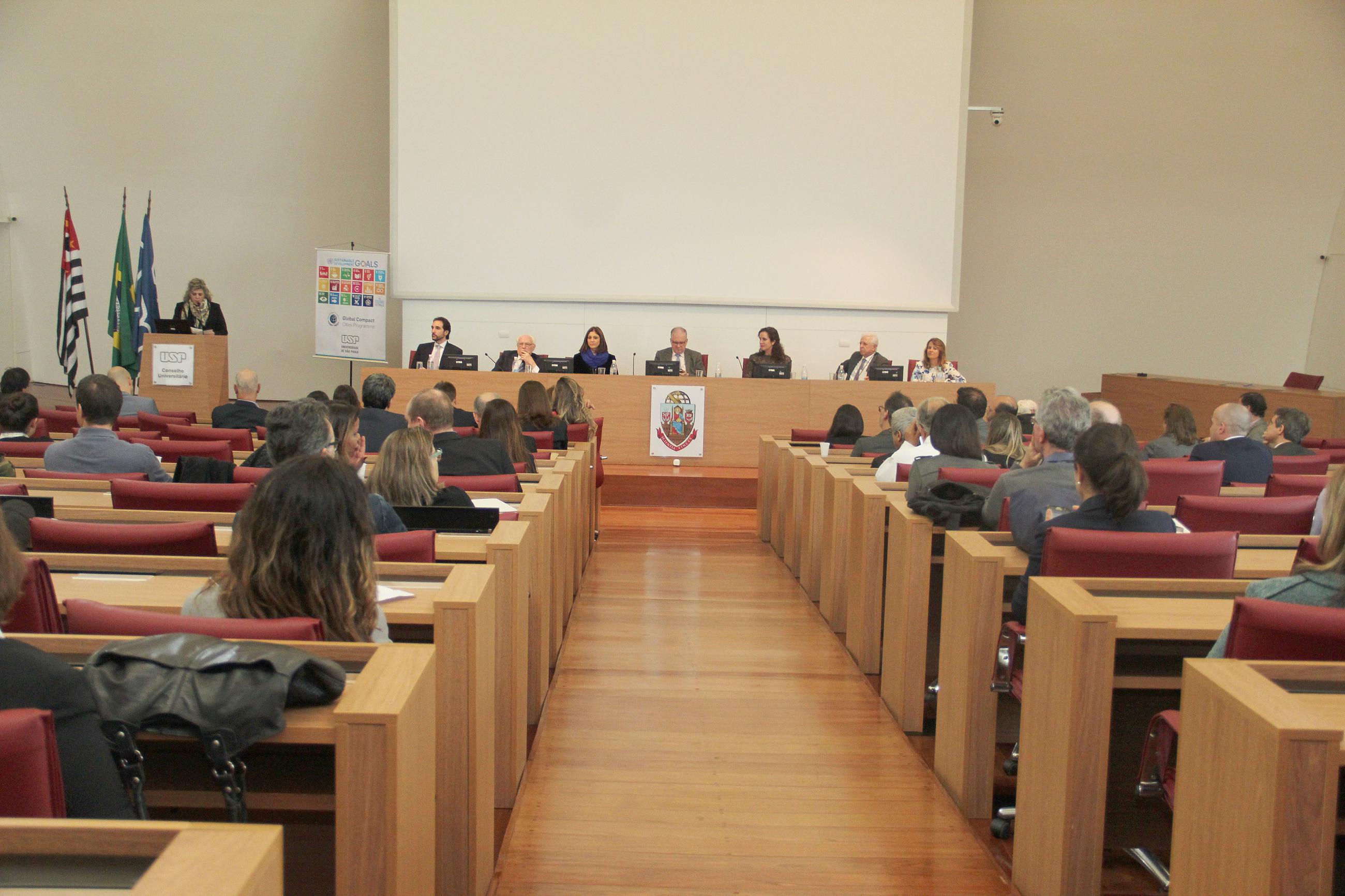 Também participaram do evento o Reitor da USP, Marco Antonio Zago; a Assessora Especial para Assuntos Internacionais do Governo de São Paulo, Ana Paula Fava; o Secretário Executivo da Rede Brasil do Pacto Global da ONU, Carlo Pereira; o Presidente da Associação dos Funcionários Públicos do Estado de São Paulo, José Goldemberg; e a Superintendente de Gestão Ambiental da USP, Patricia Iglecias.