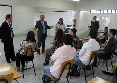 Na Unidade Regional de São José dos Campos (UR-07), às 14h00 o Conselheiro-Presidente e o Secretário-Diretor foram recebidos pela equipe de servidores coordenados pela Diretora Regional Claudia de Oliveira S. Puccinelli Alves. O Presidente externou sua satisfação e agradecimento com o empenho nos trabalhos desenvolvidos e destacou que o TCE tem investido incansavelmente no aperfeiçoamento das ações da fiscalização e orientação aos entes jurisdicionados.