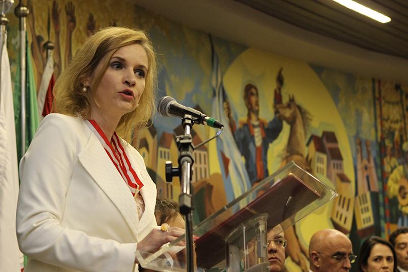 Falando em nome dos homenageados com o Colar do Mérito, a Presidente do TCE, Cristiana de Castro Moraes, referiu-se à entrega da comenda como um ato que ‘anima sobremaneira todos aqueles comprometidos com o bem público em suas mais diversas expressões’ e que a ‘magnitude do galardão está intimamente ligada à importância da instituição que a concede’.